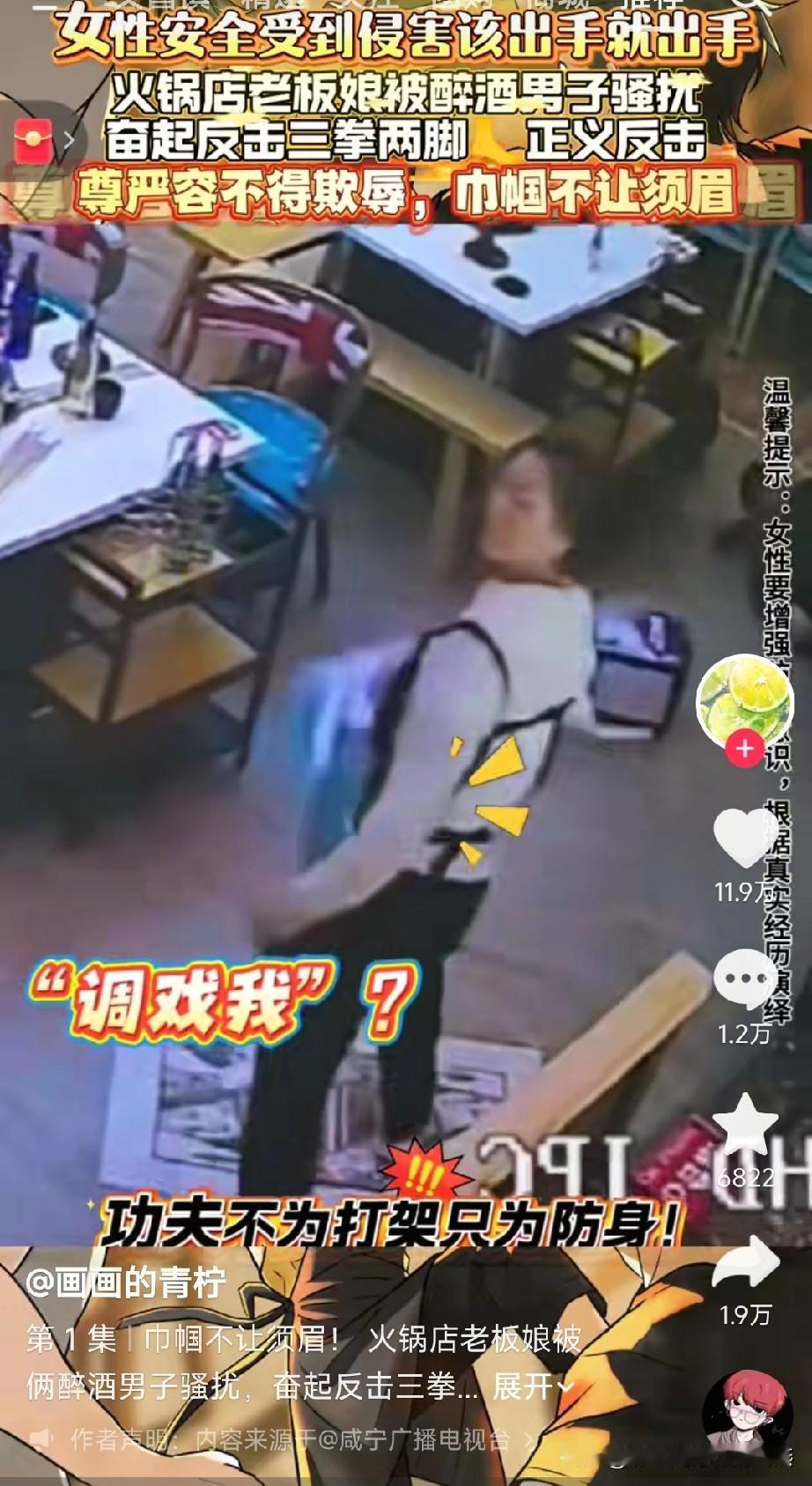 绝了! 火锅老板娘“降龙十八掌”式反杀醉汉,这波操作我直接跪了! 家人们快来看现实版“武侠名场面”! 俩醉汉在火锅店耍流氓骚扰老板娘, 人家直接开启“武林副本”,一套“左勾拳+右鞭腿”连招,把无赖打得找不着北。这气场,比《射雕》里的黄蓉还飒! 咱说,遇到这种烂人骚扰,忍是“龟派气功”(憋出内伤),怼才是“葵花点穴手”(治得他服服帖帖)!但咱普通人没这“武功”的,记得先锁血(保安全)再叫“援兵”(报警)哦。 你们要是碰到这种事,是当“吃瓜群众”还是学她当“正义女侠”?快聊聊咱女生咋把“防身招式”练成日常Buff~ 你身边有这种“隐藏女侠”人吗?