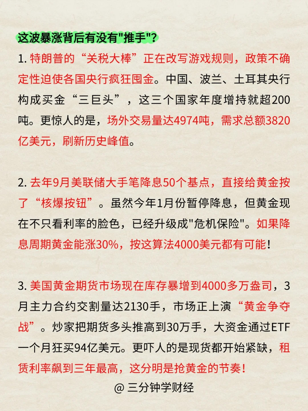 今天我们来聊聊最近的黄金,从2000美元涨到3000美元,背后的上涨逻辑是什么?黄金是我们每个人都要经历的过程,从送礼—结婚—孩子出生,我相信大部分家庭都离不开黄金。这篇文章会告诉你,黄金的上涨逻辑,避免资金损失。本内容不构成投资建议,仅限科普!