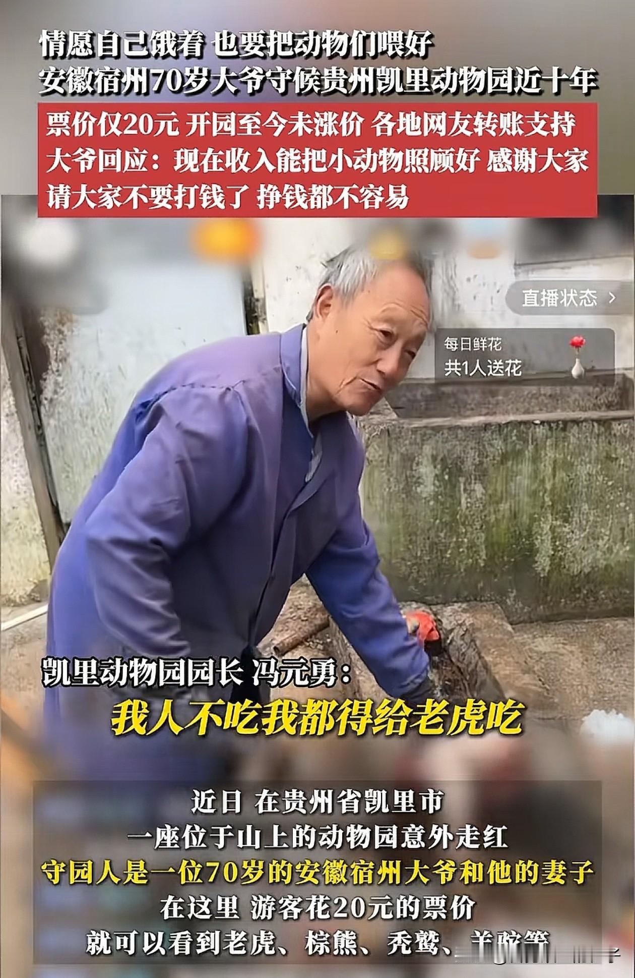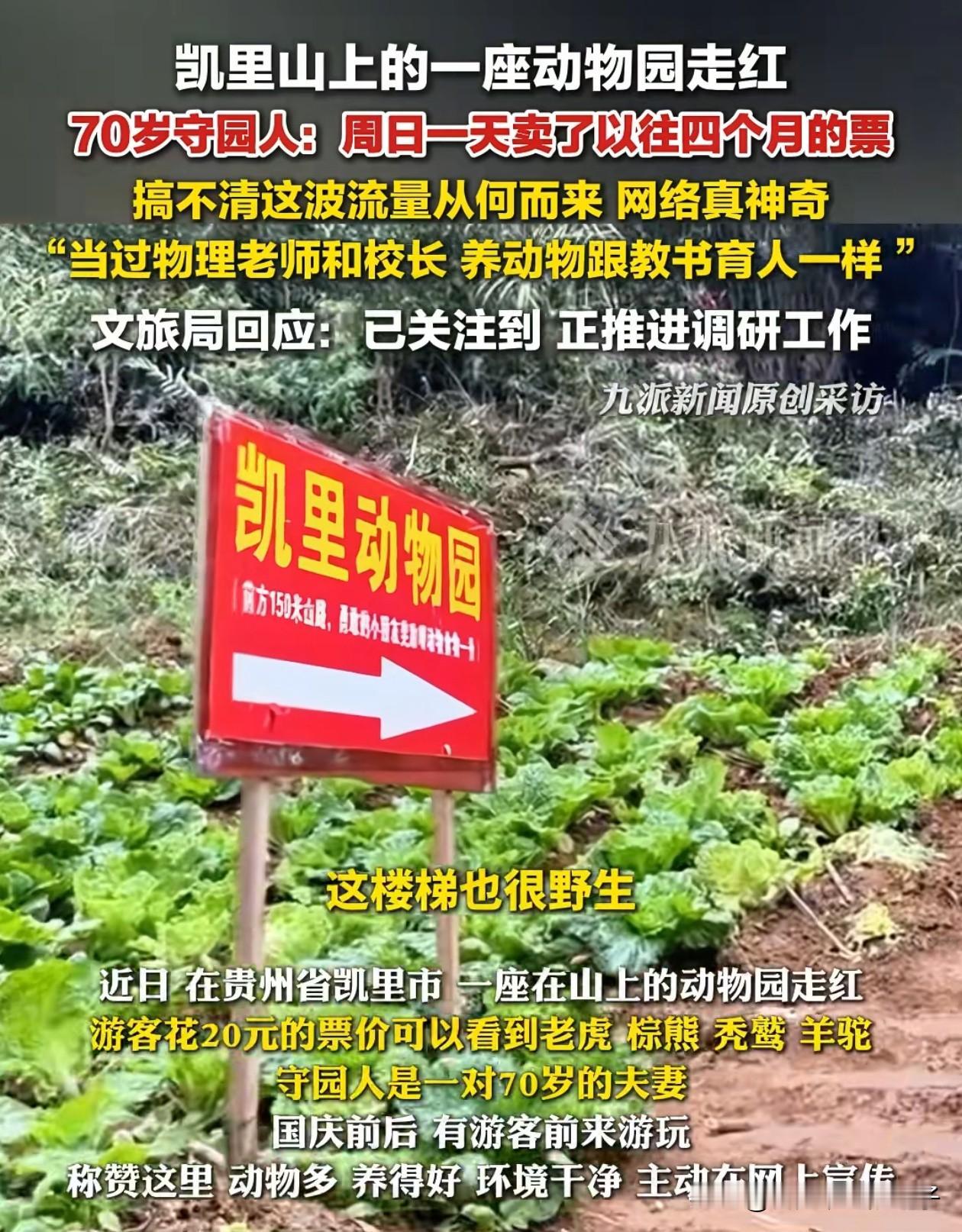 彻底火了,连央视都报道了! 凯里动物园走红不是因为20元的票价,也不是因为有多珍稀的动物,而是因为园长大爷这十年来的默默守护,宁愿自己不吃,也要自掏腰包补贴开销,把园里的二十只动物养得白白胖胖的。 其实这里最早是个游乐场,动物园一直有,但后来游乐场关了,改建成了学校和其他的,所以动物园就在最里面,虽然就一直在经营,但逐渐就没啥人了! 大爷说有时候几天都看到一个人,所以门票也没什么收入,工人就都辞退了,大爷就用自己的钱补贴,维持着动物园的运营! 因为路不好走,大爷就自己修了条山路,做了一个指示牌,虽然没人来参观,但小动物却都一直养的很好!