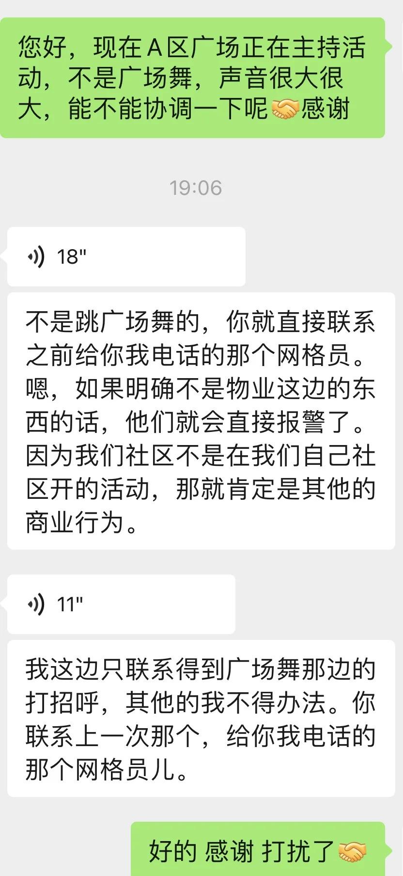一定要勇敢维权 起因是我房间正对着广场 每天都有广场舞 很吵 所以我在12345举报了 很快就有社区的服务人员联系我 广场舞都是有专门的负责人的 当然如果是私人的,负责人也该去联系维护 其次是商业活动 现在就是有在搞活动,很吵很吵!! 一定要找人去处理 自己住的社区都是有人来管的 广场舞扰民 12345投诉