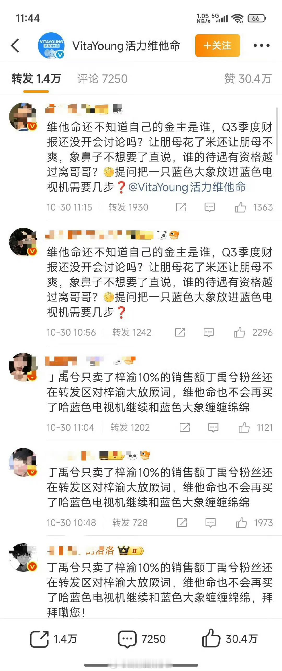 梓渝粉丝贴脸大骂维他命官博不公平,还嫉妒品牌给丁禹兮新剧《山河枕》云包场。丁禹兮