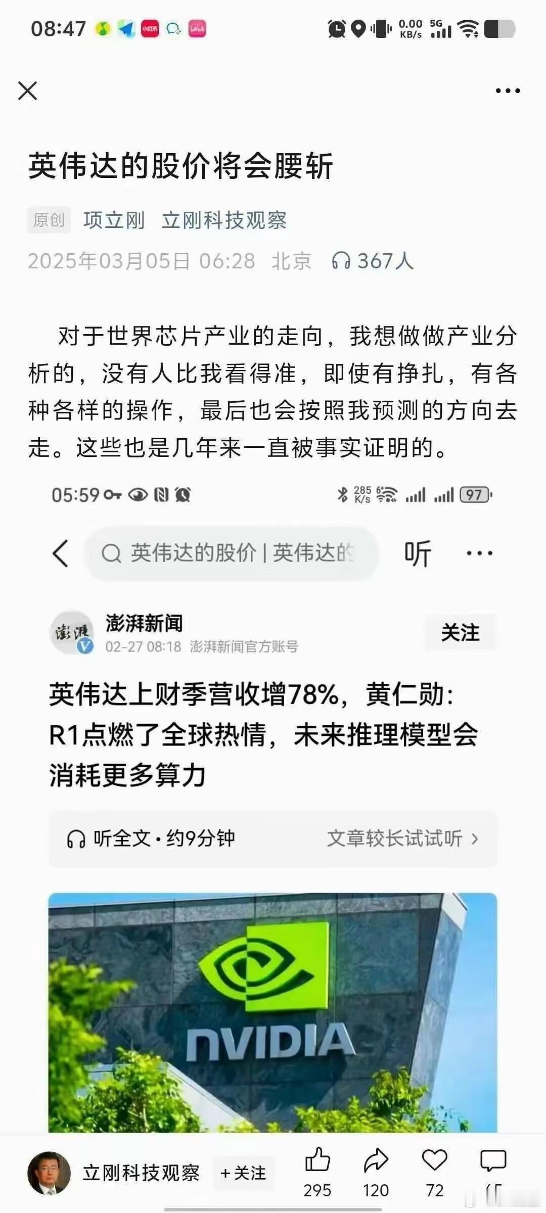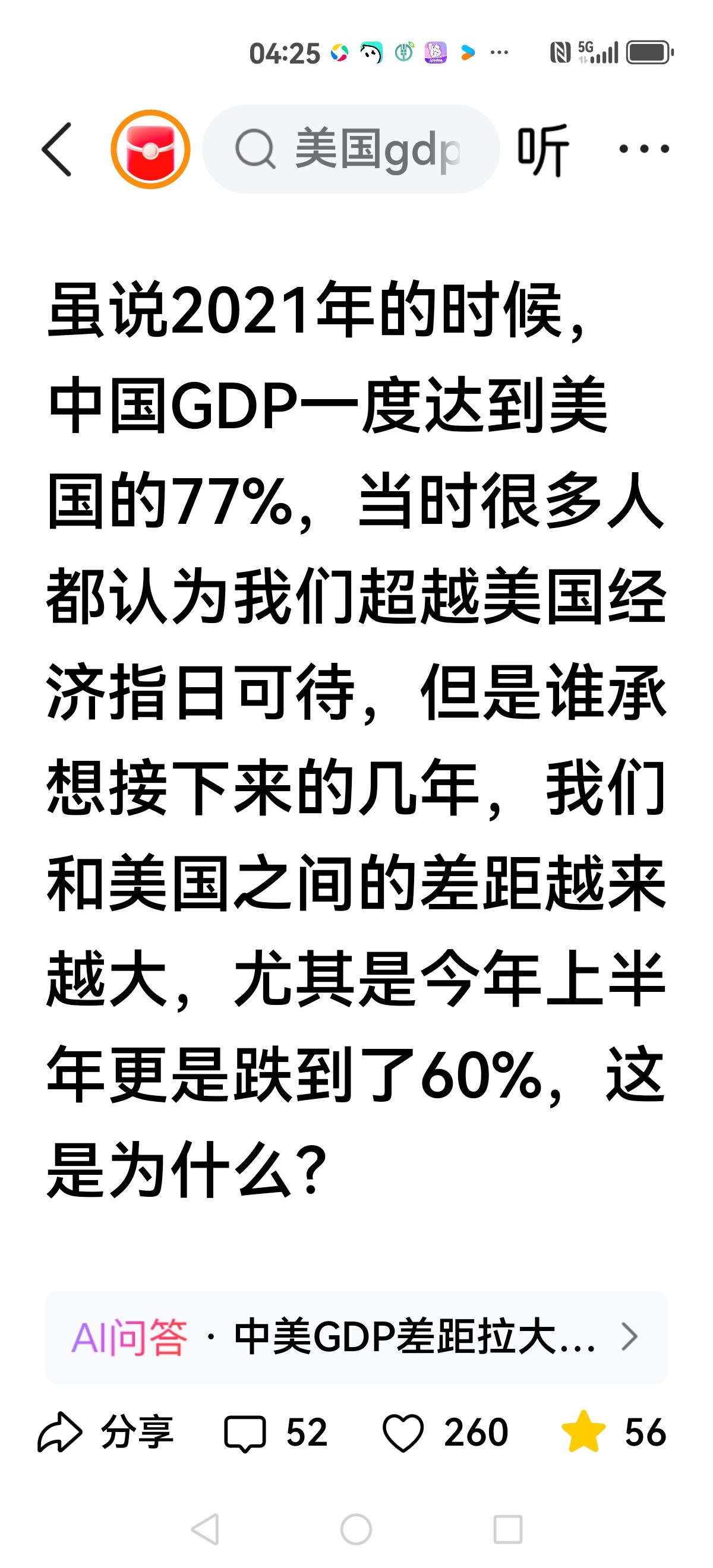 【项立刚的预测失败】 项立刚预测英伟达的股价腰斩,如今失败了。 同样我们也在争论,GDP到底有没有超越美国,去年都在预测过两年就能超越美国,成为世界第一。 谁知今年反而拉大距离,只有美国60%,去年还77%。 于是我们开始挖掘各种理由,汇率概念,美国降息等等,最后沿用张维为的套路,也就是平均购买力,结果发现超越美国了,于是乎一片欢腾。 其实,几年前张维为提出平均购买力,暗示已经超越美国。 而这次关税大战,看出美国购买力有多强劲,让世界为他让路,难道没有我们强? 不能说人多购买生活必需品就是购买能力?