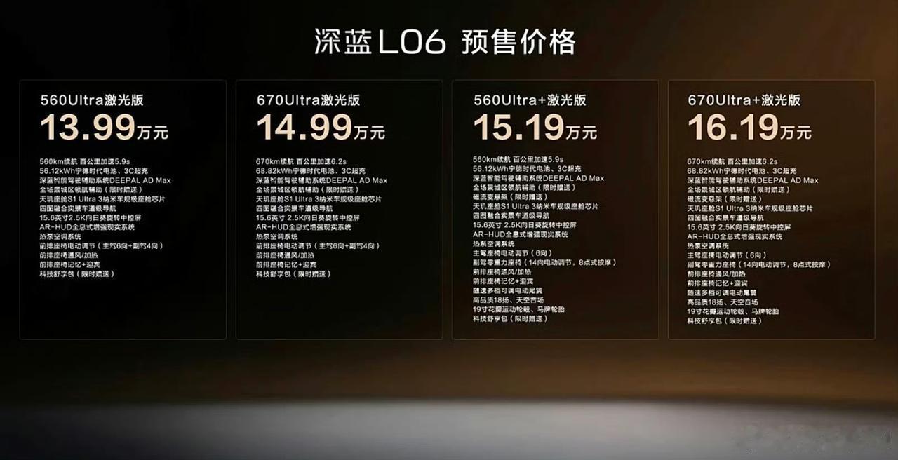 孙少军:深蓝L06预售,起步价13.99万起! 这款车型的最高售价也才16.19