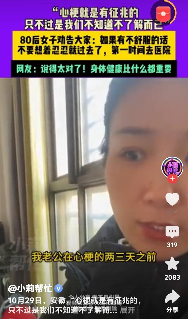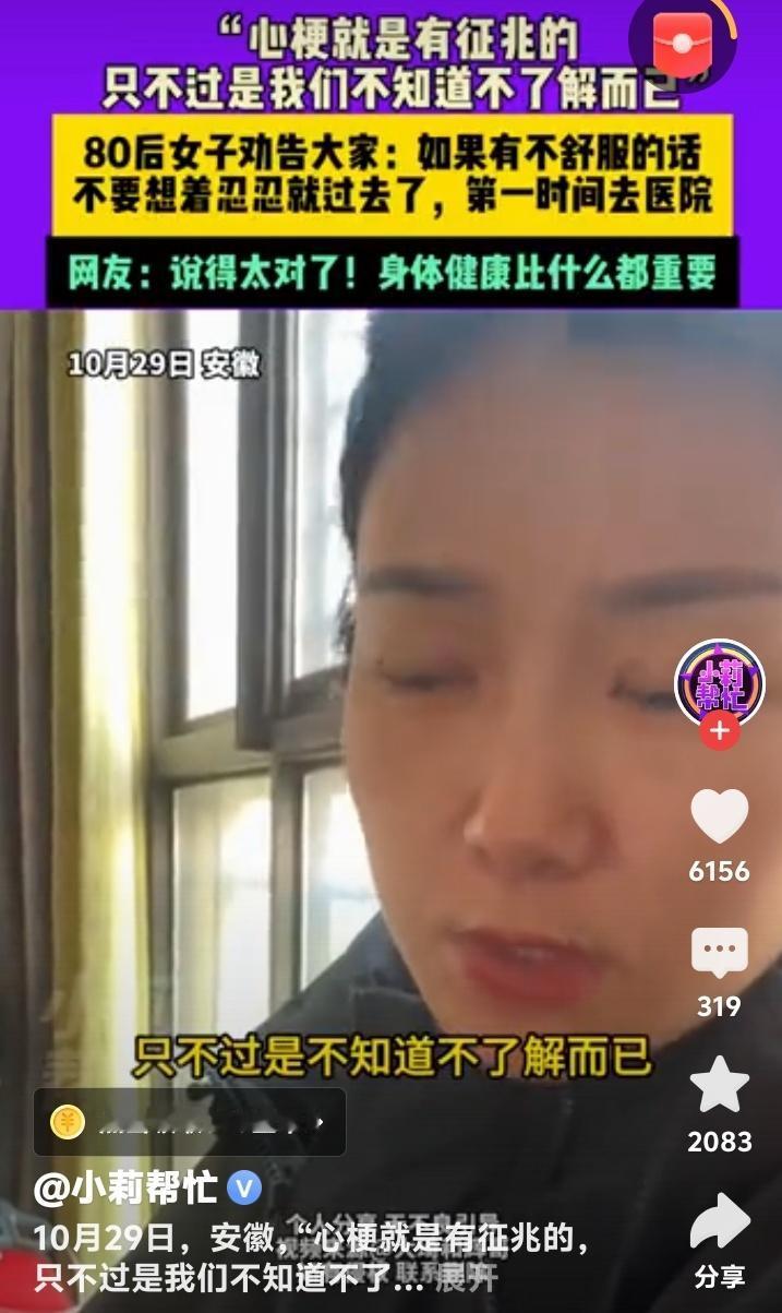 安徽80后夫妻真实经历:牙痛背痛胸闷三天拖成心梗!医生痛心疾首说出这些征兆太多人忽略了 (来源:综合@小莉帮忙报道及医疗专家访谈) 那天清晨,他捂着半边脸说牙疼得像有锥子在钻。我们笑着打趣:“准是昨晚火锅吃上火了吧?”谁能想到,这竟是死神敲门的第一次警钟。 第二天他弯腰换鞋时突然僵住,后背的刺痛让他倒抽凉气。可这个四十岁的男人只是摆摆手:“估计是搬货扭着了,贴片膏药就好。” 第三天凌晨,他浑身冷汗地推醒我,胸口压得喘不过气。救护车呼啸着冲进医院时,心电图那条疯狂的曲线让医生瞬间变了脸色:“急性心梗!再晚半天人就没了!” 在CCU门外瘫软的那一刻我才惊觉——原来身体早在一个月前就不断发送求救信号:他总说左臂发麻,爬两层楼就喘如风箱,甚至有次吃着饭突然脸色煞白……可我们总用“中年亚健康”轻描淡写地盖过。 主治医生指着血管造影图痛心疾首:“这条血管已经堵了90%!你们知道吗?心梗前的牙痛不同寻常,往往是下颌连脖颈的放射性疼;后背痛更像被巨石压住;而胸闷会带着死亡降临的恐惧感……” 病床旁监测仪的滴答声里,我看着这个曾扛着50斤大米爬六楼的男人,如今连喝口水都要小心翼翼。他苦笑着喃喃:“当初要是把牙疼当回事,现在还能陪儿子踢场球……” 这哪是偶然的疾病?分明是长期熬夜跑外卖、一天三顿冷饭、压力大到抽烟解愁的必然结局!我们总想着撑过这阵子,却忘了生命从来不等“以后”。 专家翻着病例册叹息:如今心梗患者最年轻的才20岁!熬夜党、外卖族、久坐人群,如果出现不明原因的左肩痛、喉咙发紧、胃部灼烧却查不出胃病,请立刻排查心脏! 现在他口袋里永远揣着硝酸甘油,我学会了对身体信号“过度敏感”。那次抢救花光了我们攒了三年的买车钱,但握着彼此温热的手时终于懂得:人间最奢侈的从不是豪宅名车,而是深夜醒来能听见枕边人的呼吸。 如果你正刷着手机揉发酸的眼睛,如果你对偶尔的心悸一笑了之,请记住安徽某个急诊室里曾有个男人与死神擦肩而过。不舒服别硬扛,去医院检查哪怕虚惊一场——这世间所有繁华,都抵不过体检报告上那句“未见异常”。 心梗征兆健康警钟