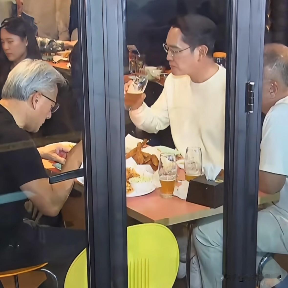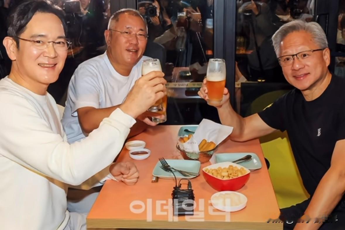 英伟达都成全球市值第一的公司了,黄仁勋还在卖力给三星会长李在镕捧场! 一边是身价N位数、手握全球科技命脉的“AI教父”,一边是韩国第一财阀三星的掌舵人李在镕。 活动结束,俩人还有现代会长一起凑在炸鸡店里谈笑风生,外面记者都挤满了! 黄老板身价比李在镕还多两位数,把“商业社交”玩得滴水不漏。