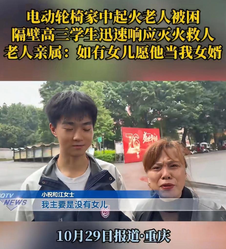我的天!现在的00后也太顶了吧!重庆一老旧小区突发大火,浓烟直接把整间屋子吞了,八旬老爷爷困在轮椅上动弹不得,电瓶都炸了,门框烧得滋滋响 ! 关键时刻,隔壁高三男生小祝光着脚丫、就穿条短裤冲了出来!三次冲破火墙,后背被吊灯碎片划了10厘米长的口子都没顾上,硬是把老人从鬼门关抱了出来 !事后记者问他怕不怕,这体育生憨厚一笑:“教练说关键时刻要顶得上,换谁都得上!” 老人女儿哭着上门致谢,直言“一想到他穿摇裤救人的样子就想哭,我要是有女儿,必须让他当女婿”!更暖心的是,小祝平时就爱帮社区孤寡老人,救人后悄悄回学校训练,直到家属找上门才被曝光。消防都夸他“先断电后救人”,专业又勇敢! 这才是当代青年该有的样子啊!没有惊天动地的口号,全是刻在骨子里的善良和勇敢。为小祝的见义勇为点赞,也提醒大家:老旧小区要注意电线老化,轮椅充电千万别违规! 你被这00后小伙子圈粉了吗?如果是你遇到这种情况,会第一时间冲上去吗?评论区聊聊,一起为正能量转发!见义勇为 00后担当 暖心瞬间 邻里互助