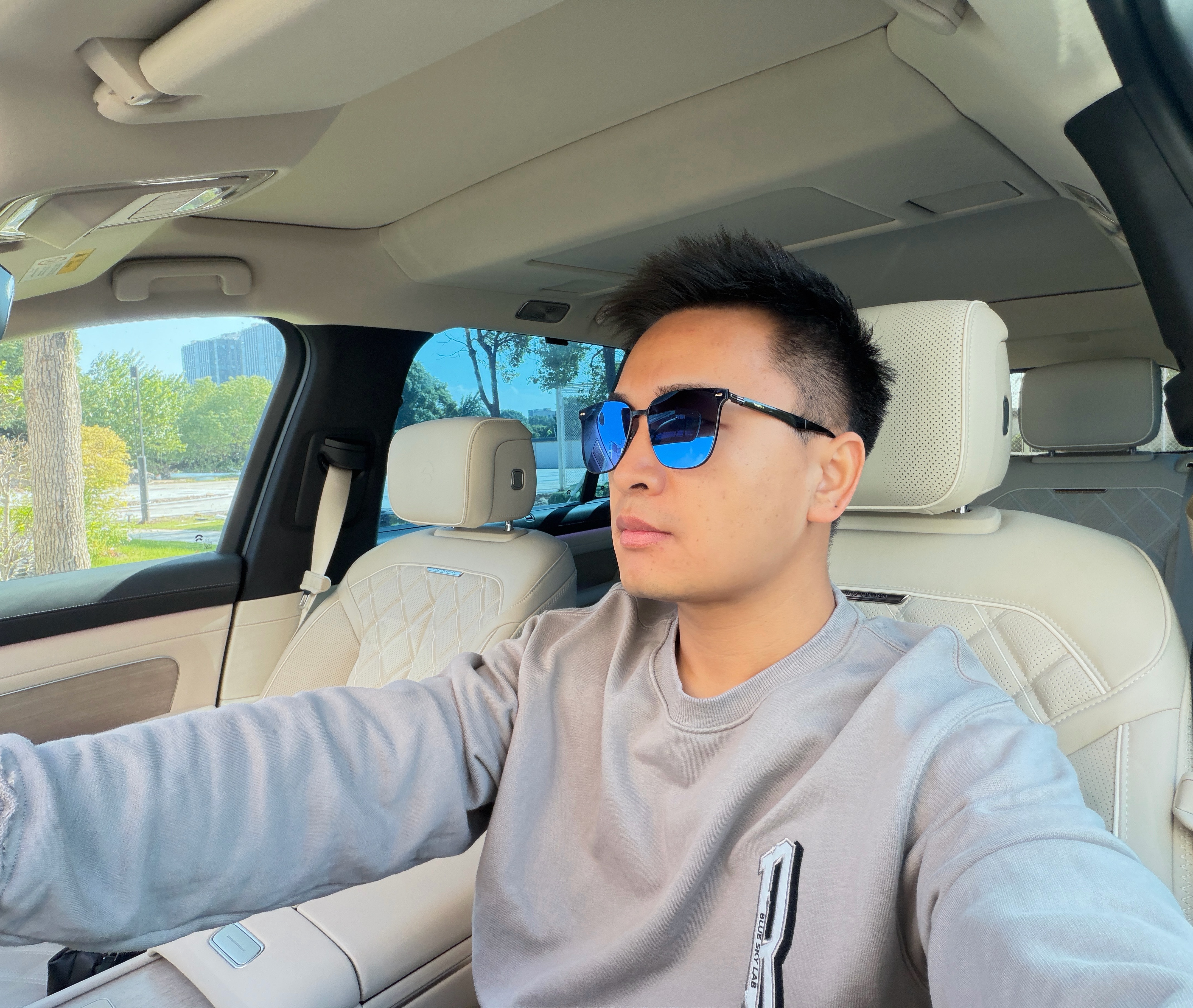 他说,因为在白色内饰的车里自拍更好看!自带柔光效果🤳