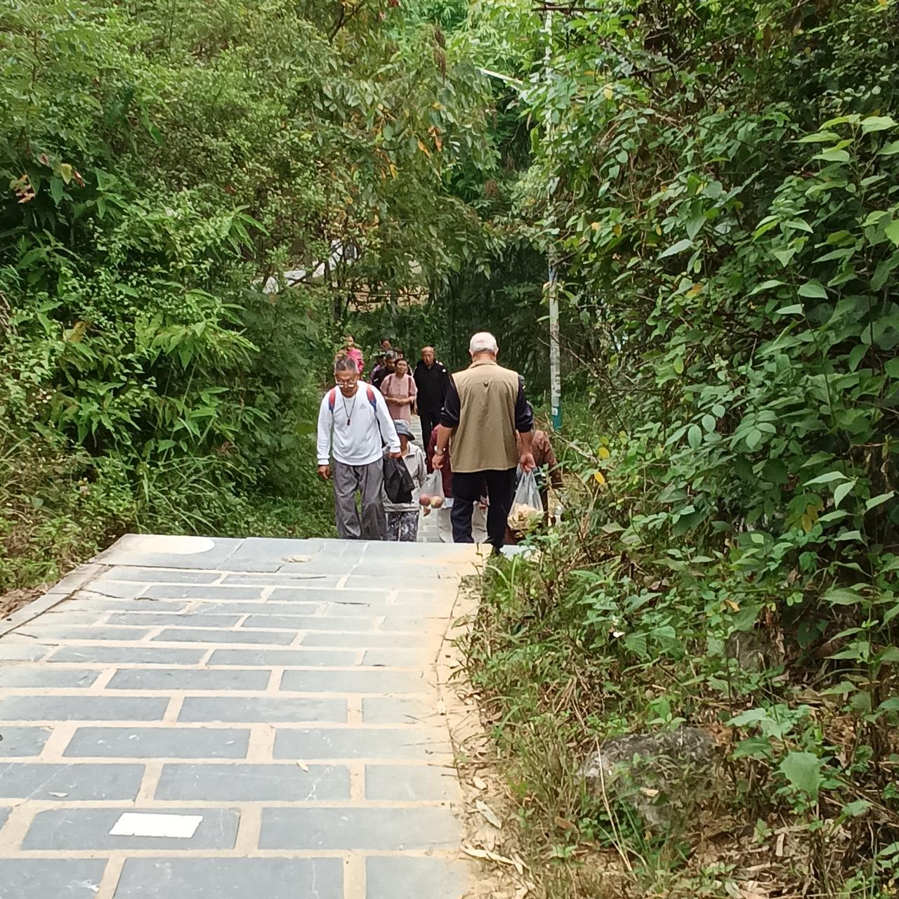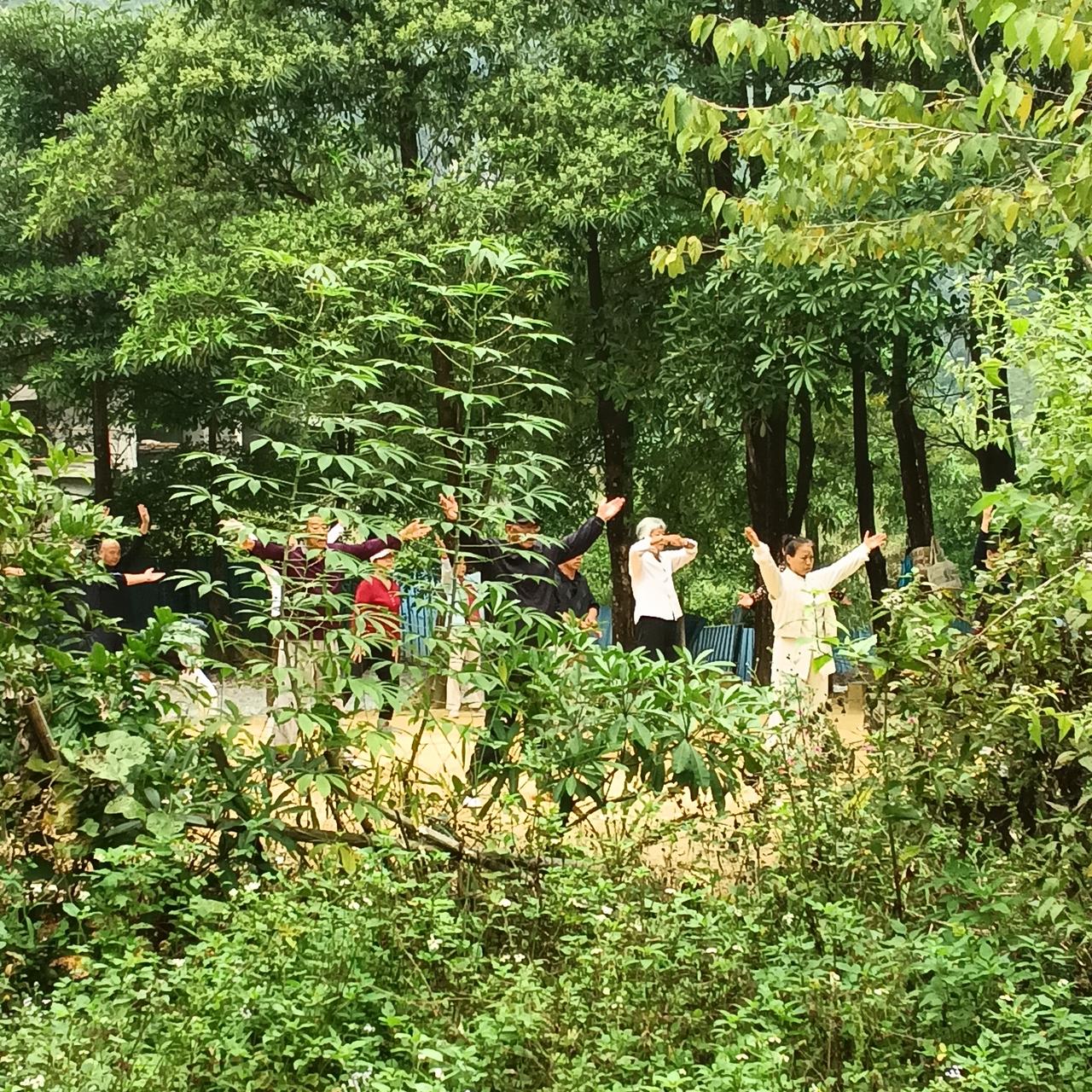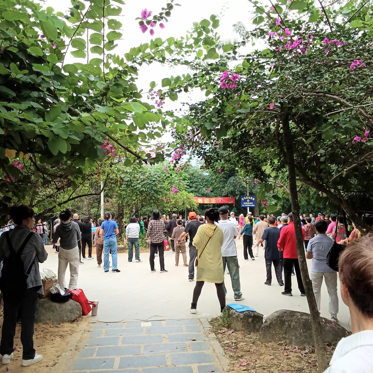 巴马康养的日常 满眼鲜花绿植 来到巴马第4天了今天破月村由大吉,但我们没有兴趣还是走在去百魔洞的乡野路上。 整个感觉就是举目有郁郁葱葱的远山,俯视清波荡漾的小河,而平视又随处可见鲜花与锻炼做操打拳的康养人。真可谓一片繁荣景象。 早上8:30左右,从坡月村到百魔洞的路上,看见一群康养人在轻柔的佛歌中做拍打操(见图片二),目测至少200人。我们也跟着做了一会儿,感觉心旌摇曳,满身舒爽。 路上的人们除了去百魔洞景区,还有提着水桶到河边接山泉水的、去大黑管磁疗的、也有顺路去大榕树晒太阳的。 在乡村康养不同于我们在城市老家的生活,它更偏重养心养神养内在。即使是有氧运动,也只会是轻柔的而非任何剧烈动作。 在一家店里看见一只不知名字的小猫咪(见图片11),他对于我这个猫吃来讲实在是一份大礼。今将实作为福利发给大家欣赏。