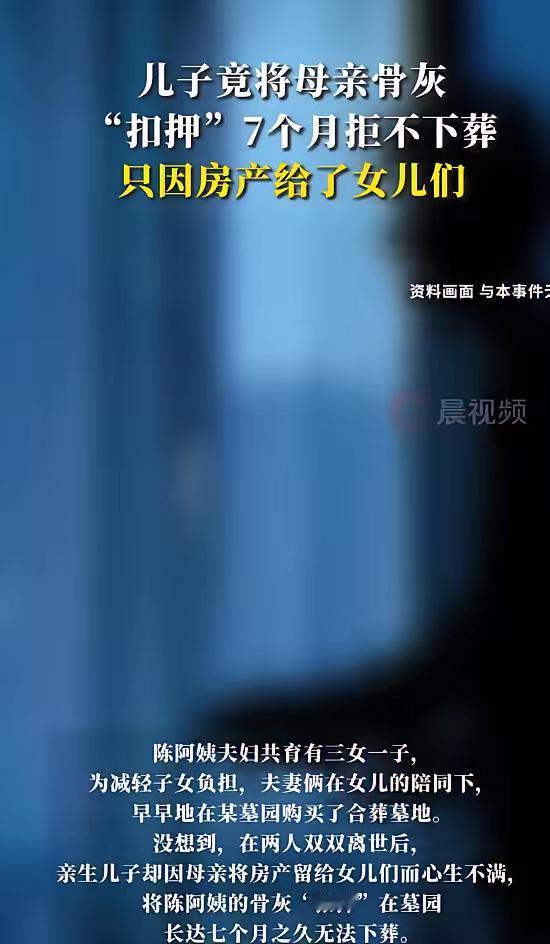 上海这事儿看得人血压飙升!为了几百万房产,儿子竟把亲妈骨灰扣在墓园7个月,扬言“不给房就不让下葬”,这哪是争产,分明是丢了做人的底线。 王某本以为自己是独子,房产稳拿,没成想母亲早立了公证遗嘱给三个姐姐。丧礼一结束,他就拿着墓穴证书要挟,把母亲的身后事当成谈判筹码。可他忘了,墓穴是给父母买的,使用权在老人,子女本就该帮着完成“入土为安”的心愿。 法院说得太对了,这事儿不光违伦理,还碰了法律红线。最后他房没拿到,反倒落个“不孝子”名声,亲情也彻底碎了。说到底,钱没了能再挣,可人品和亲情丢了,这辈子都捡不回来。 你觉得这事儿里最让人寒心的是啥?亲情真能被钱彻底绑架吗?来聊聊~