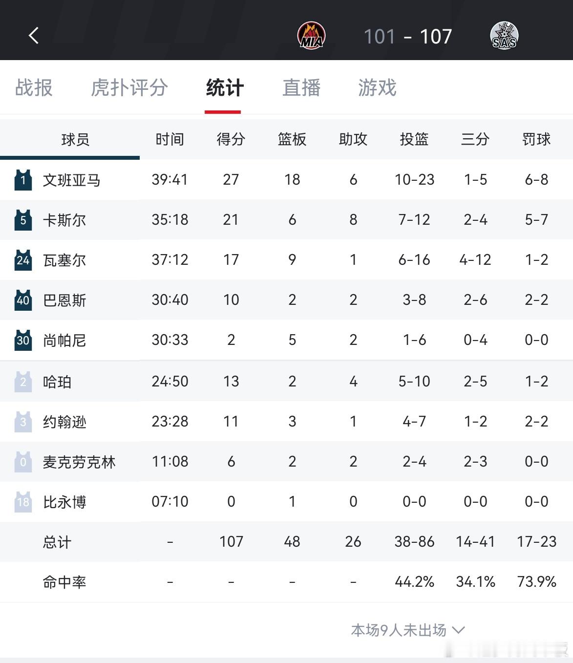 马刺107-101击败热火,取得5胜0负,队史首次开局五连胜!