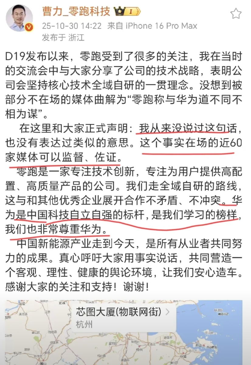人家零跑高管说自研智驾,结果被造谣成:和华为道不同不相为谋。