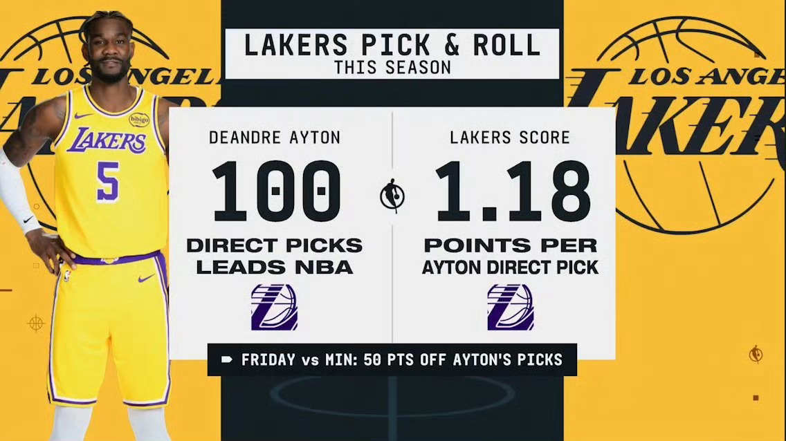 这就是艾顿的作用!本赛季直接掩护100次全联盟第一,每次掩护能让湖人得到1.18分!
