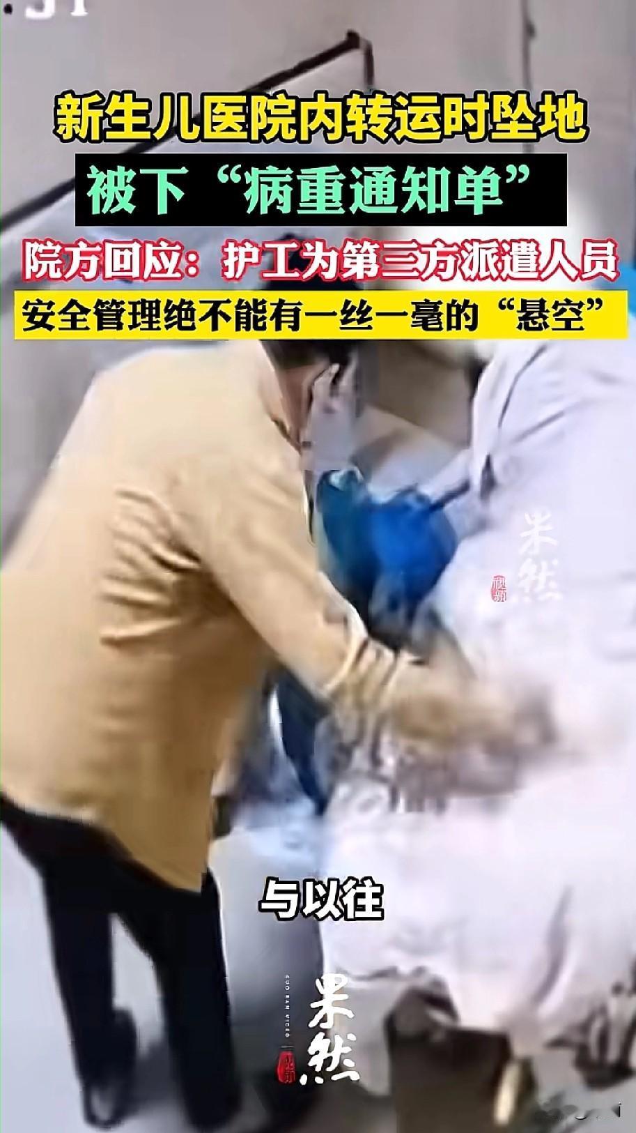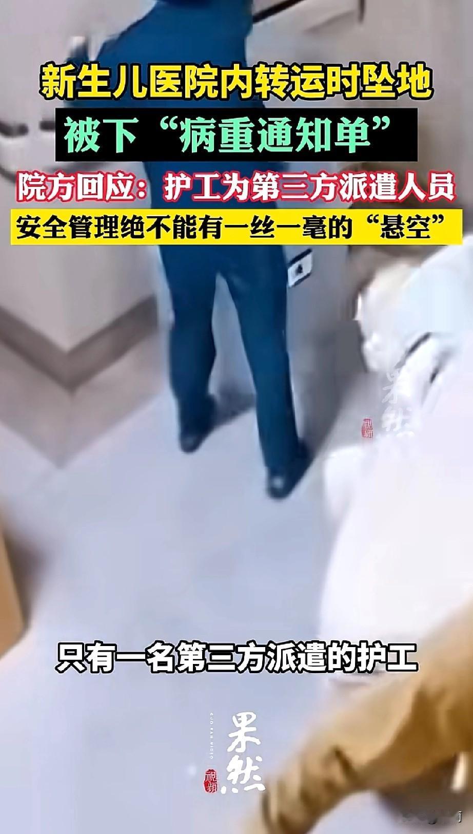 10月30日清晨,宁德市医院一名出生仅2小时的新生儿,被外派护工转运至病房时坠落。护工开门松手瞬间,推车护栏打开,孩子摔落地面。家属发现孩子拒奶后检查,确诊右顶骨骨折、颅内出血,收到病重通知单。 涉事护工是派遣员工,家属称此前转运有两人陪同,此次仅一人。医院曾涉多起医疗纠纷,今年8月还因病历问题被罚。 新生儿转运容不得半点疏忽,护栏检查、人员配置都是底线。外派人员管理不能缺位,医院更该把安全流程落到实处。每个新生命都该被细心守护,希望调查能给家属公道,也给所有医院敲响警钟。