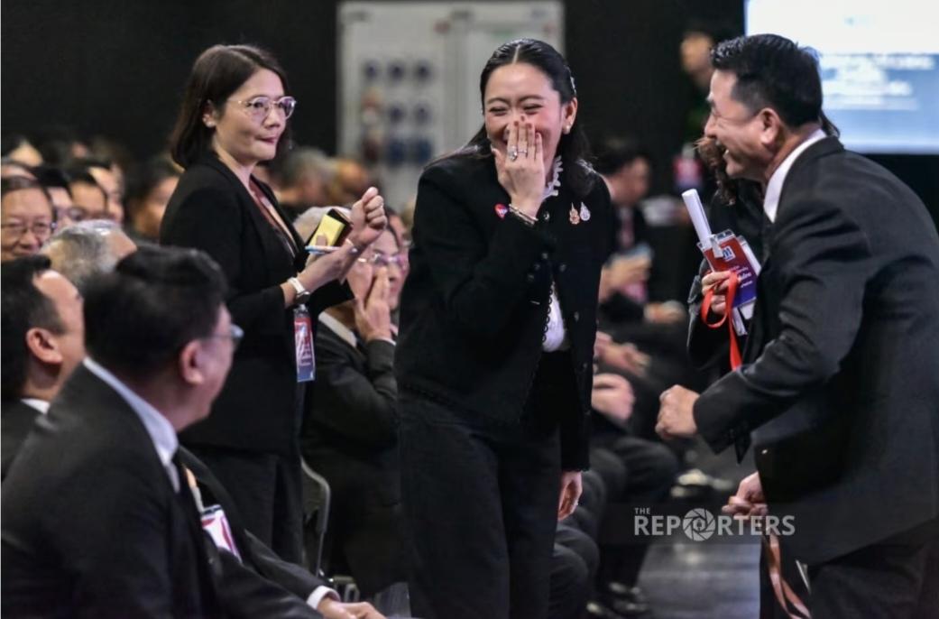 10月31日现身为泰党总部的佩通坦,她依然是那么开朗、乐观:今日,为泰党成员在为泰党总部济济一堂,参加第69届的党魁选举。佩通坦明媚灿烂的笑脸,瞬间融化了大家的心啊。作为为泰党一份子,她按时来到总部,和大家一起准备选举党魁。 为泰党成员真不少,黑压压一片,气氛热烈庄重。在会前,大家肃立默哀,致敬诗丽吉王太后。党魁会是谁呢?今天就会见分晓!