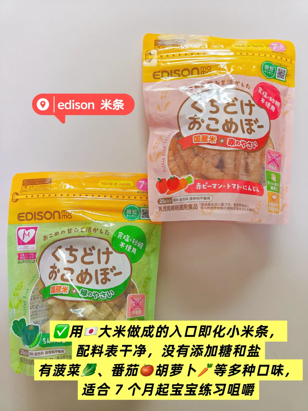 趁着产假,特地飞了趟日本🇯🇵 主线任务是给5月龄的宝宝囤辅食!!! 阿卡酱,日本母婴店的顶流,精挑细选2小时,终于买到了适合自家崽崽的辅食 . 🛍️【选购计划&目标】: ❶尽量挑选有机的,或者配料表干净、无盐无糖的 ❷主要买🥩肉泥、🐟鱼泥和🍎果泥,❌不买菜泥(菜泥打算给宝宝买新鲜蔬菜自己动手制作) ❸辅食工具 . . 下面是我精挑细选的无盐无糖、适合不同月龄宝宝的辅食: . 🛒【最终清单】: 1⃣️主食类 ✅the kindest的高铁米粉: 用的是玄米,比大米营养含量更高。而且很多宝妈反馈,口感很香、很细腻(图2) ✅edison米条: 入口即化,配料表干净,没有添加糖和盐,有菠菜🥬、番茄🍅胡萝卜🥕等多种口味,还适合7个月起的宝宝练习咀嚼(图3) ✅混合辅食: 中式鸡肉蔬菜粥、真鲷蔬菜翻(图4) 都是即食的,可以短暂的解放妈妈,很方便 . 2⃣️辅食肉泥类 ✅the kindest单一猪肉泥、鸡肉泥、鱼泥: 日本对于鱼肉的分类非常细化,有日料常用的鲣鱼、鲑鱼、白身鱼泥,这三种都给宝宝买了尝尝、后续再根据喜好继续囤货, 每种包装上都标注有参考月龄(图5、6、7) ✅鸡肝粉: 含铁高,补铁必备(图7) . 3⃣️果泥类 ✅babybio有机果泥: 原料简单,0添加,都是有机水果,没额外添加果汁,质地浓稠,还有很多种口味选择(图8) . 4⃣️辅食工具类 ✅冷冻辅食的硅胶盒(图9) ✅按压学饮杯 . 每个宝宝都有各自的特质,每个宝宝的辅食计划也不尽相同,以上内容仅供各位新手妈妈参考❤️ . ——————