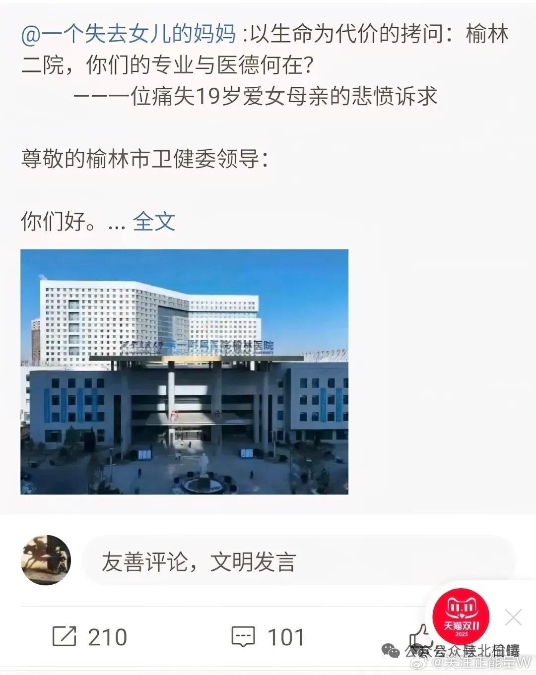 原标题:以生命为代价的拷问:榆林二院,你们的专业与医德何在? 一位痛失19岁爱女母亲的悲愤诉求