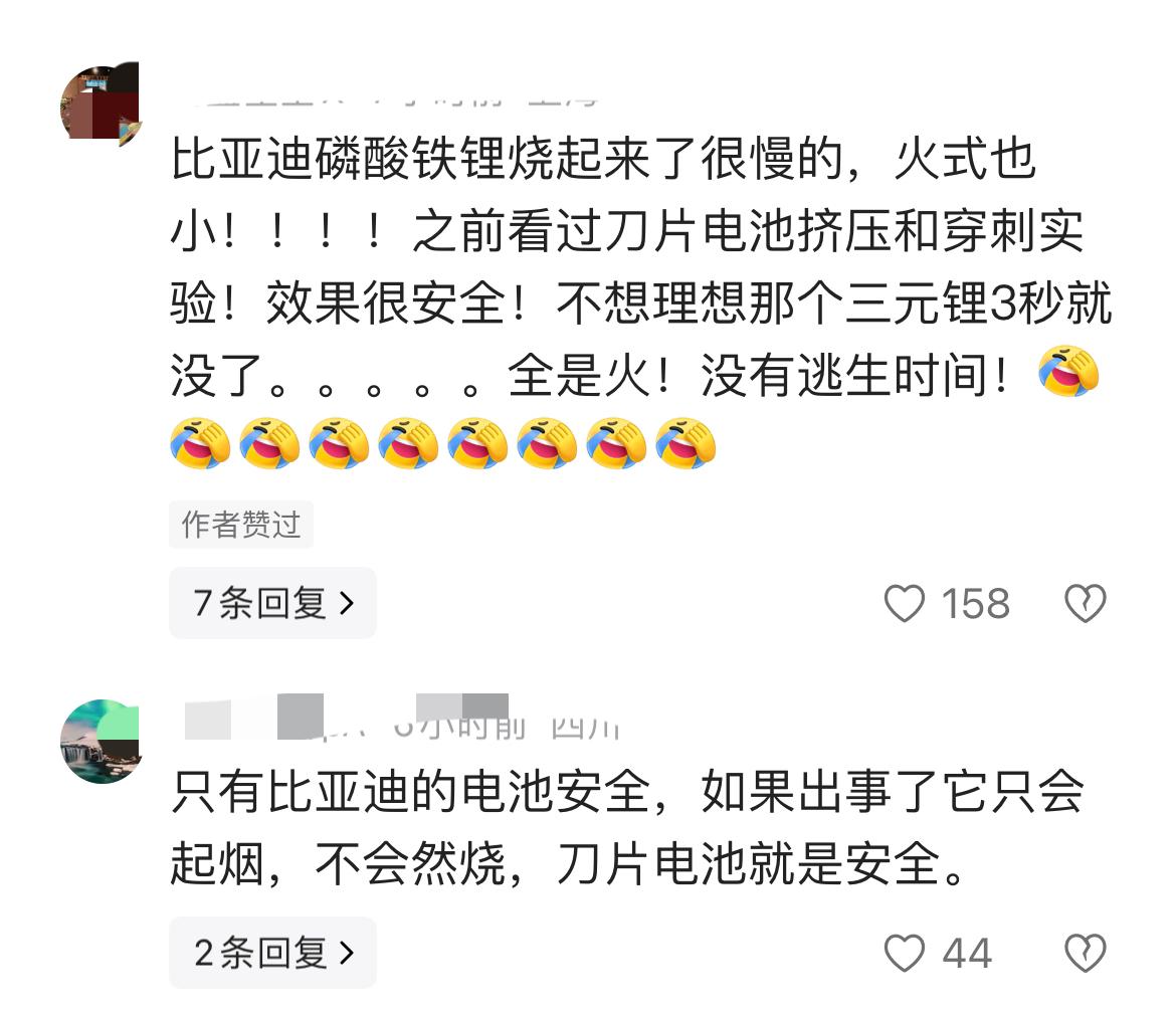 当然,安全是磷酸铁锂比三元锂强的地方,为什么这么多人买比亚迪,这是主要原因。