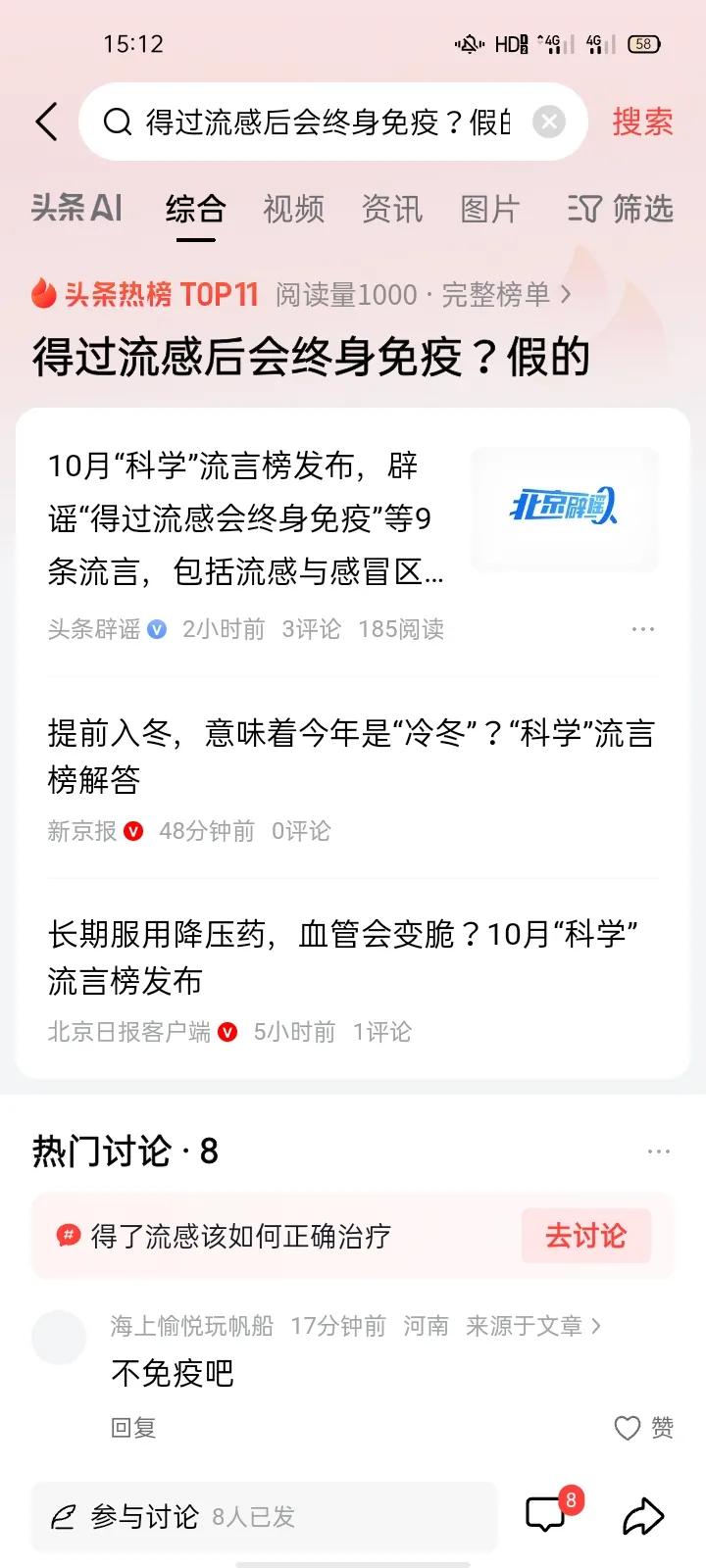得过流感以后会终身免疫? 这不扯么你说?这不扯么?谁没得过流感啊?再不得了吗?不可能啊! 假的!谣言! 长个脑子都知道,感冒只是阶段性好了。回头冷了热了还是一样会找上门的! 都是些什么人, 这都有传说的?