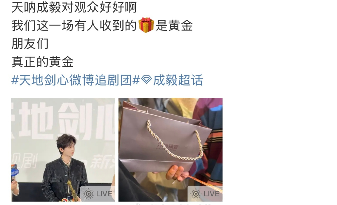 追剧团媒体收到成毅赠送的黄金,“成毅散财童子” 的说法逐渐传开,艺人以黄金赠予媒体的方式,在公开交流中较为少见,让过程多了一份独特记忆点。成毅送追剧团媒体黄金他散财童子来了成毅送金子