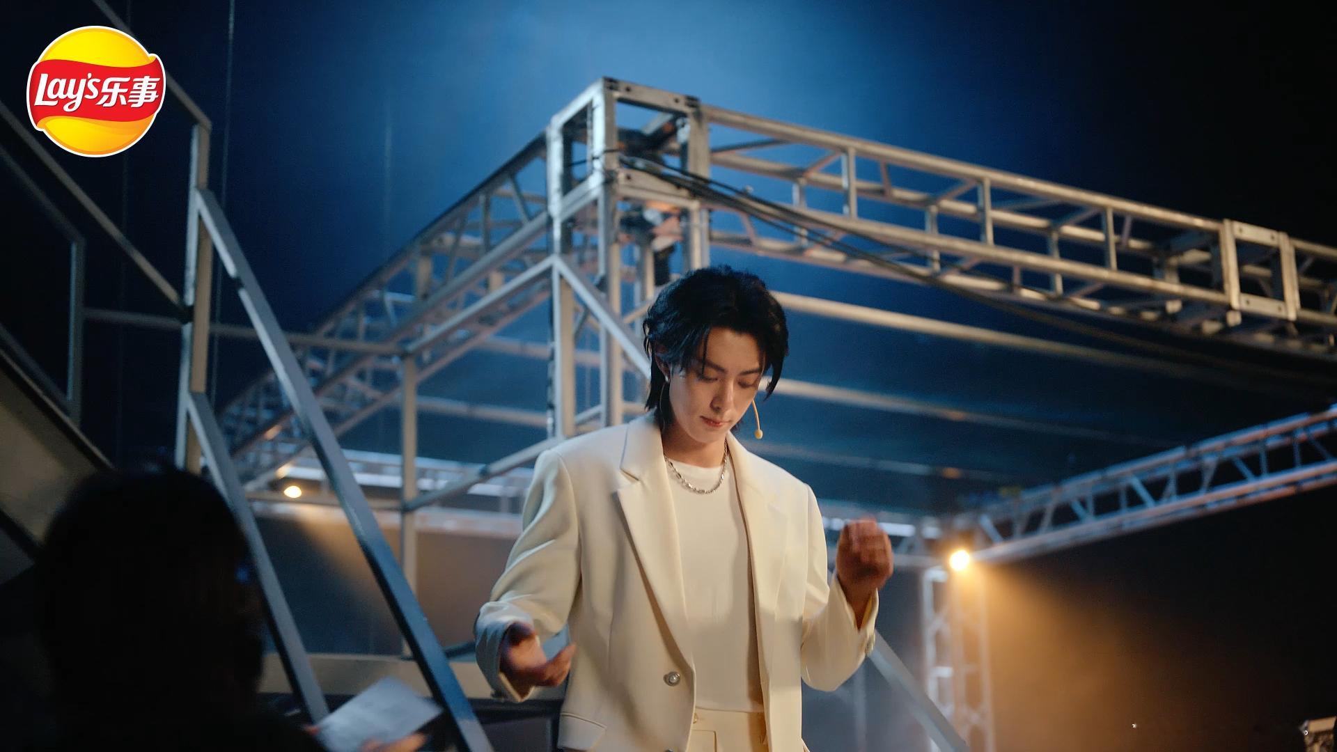 想吃王鹤棣手里的薯片镜头前是气场全开的西装霸总,收工后秒切沙发瘫吃薯片模式,咔