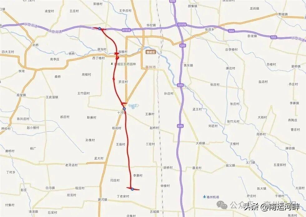 五河至亳州高速公路亳州西环段 起于亳州市谯城区魏岗镇西南侧与G1516盐洛高速