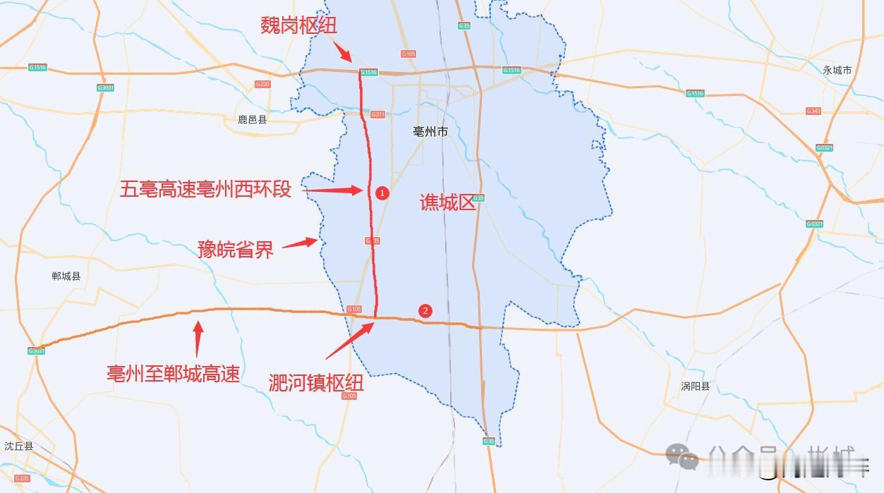 五河至亳州高速公路亳州西环段 起于亳州市谯城区魏岗镇西南侧与G1516 盐洛高速交叉处,终点位于淝河镇东北侧与S62亳郸高速交叉处, 线路全长40.002km,采用双向四车道高速公路标准建设。 目前25年11月份招标监理,试验检测,预计明年初开工建设。 涡阳高速地图 五亳高速 皖北高速建设 亳蒙高速 亳州 亳州的亳蒙高速11月份通车,立马就要干两条高速,亳州厉害👍🏻