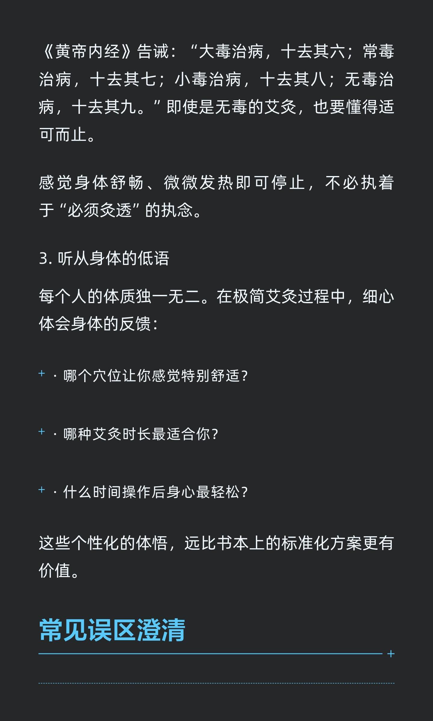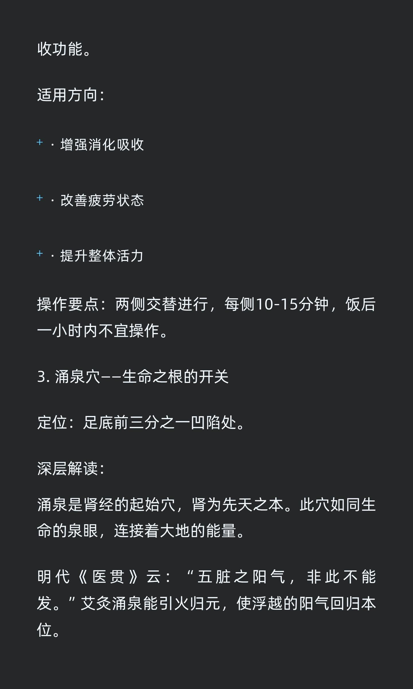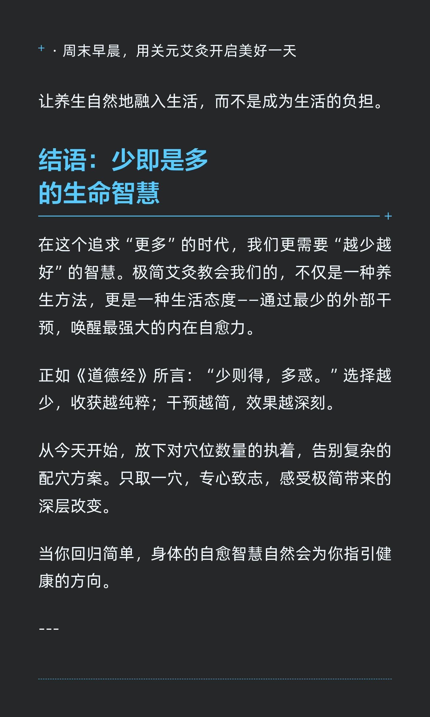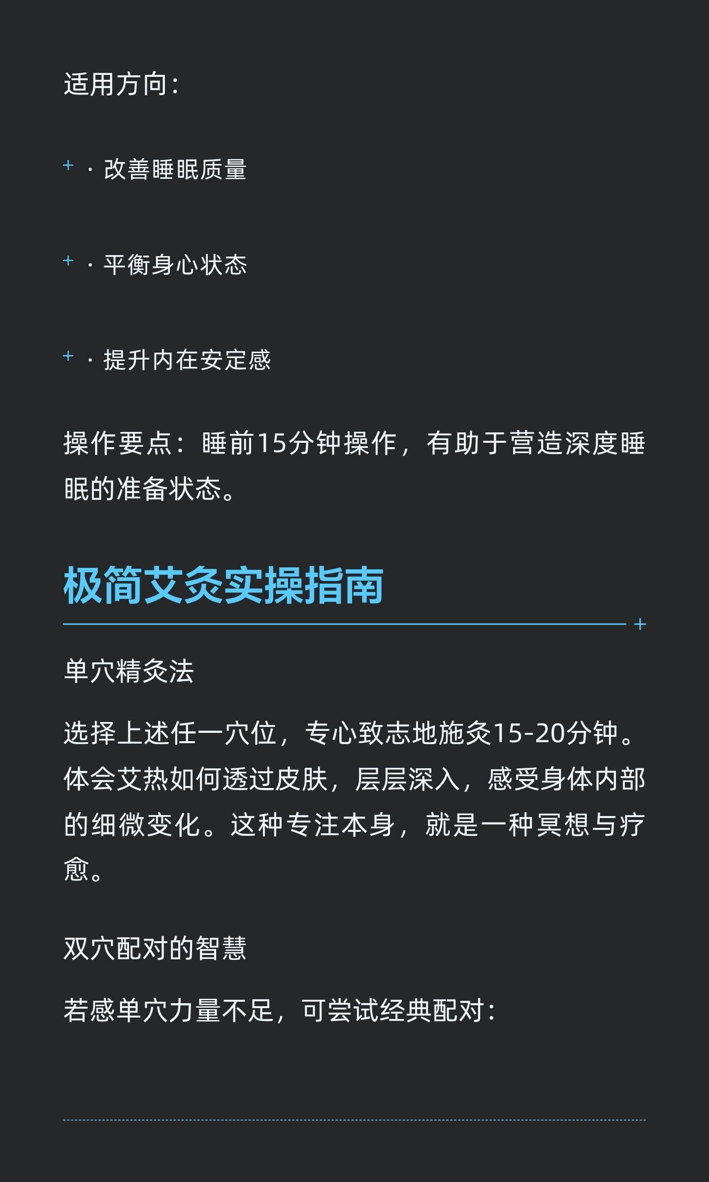 极简艾灸:用最少穴位,唤醒最强自愈力极简艾灸通过聚焦关键穴位,激活身体自愈智慧,提升整体能量水平。关元、足三里、涌泉三个黄金穴位,分别提升能量、增强消化、改善睡眠,操作简单易行,融入生活轻松养生。知艾者福善灸者寿艾灸艾条艾柱灸出好气色健康养生中医养生
