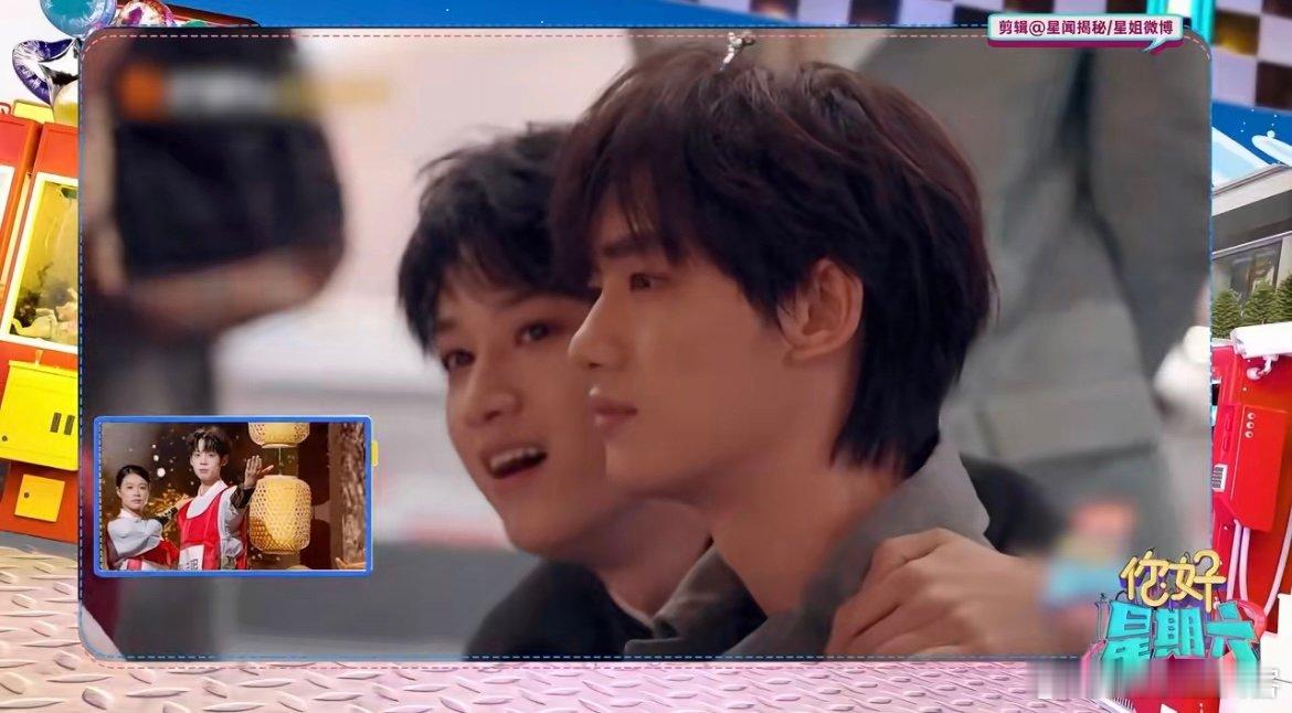 敖子逸说丁程鑫这么沉啊 随口一句吐槽藏不住的熟稔,前一秒还在和罗云熙确认拍戏时间,下一秒就被轻松抱起,这就是竹马兄弟的默契吧!你好星期六