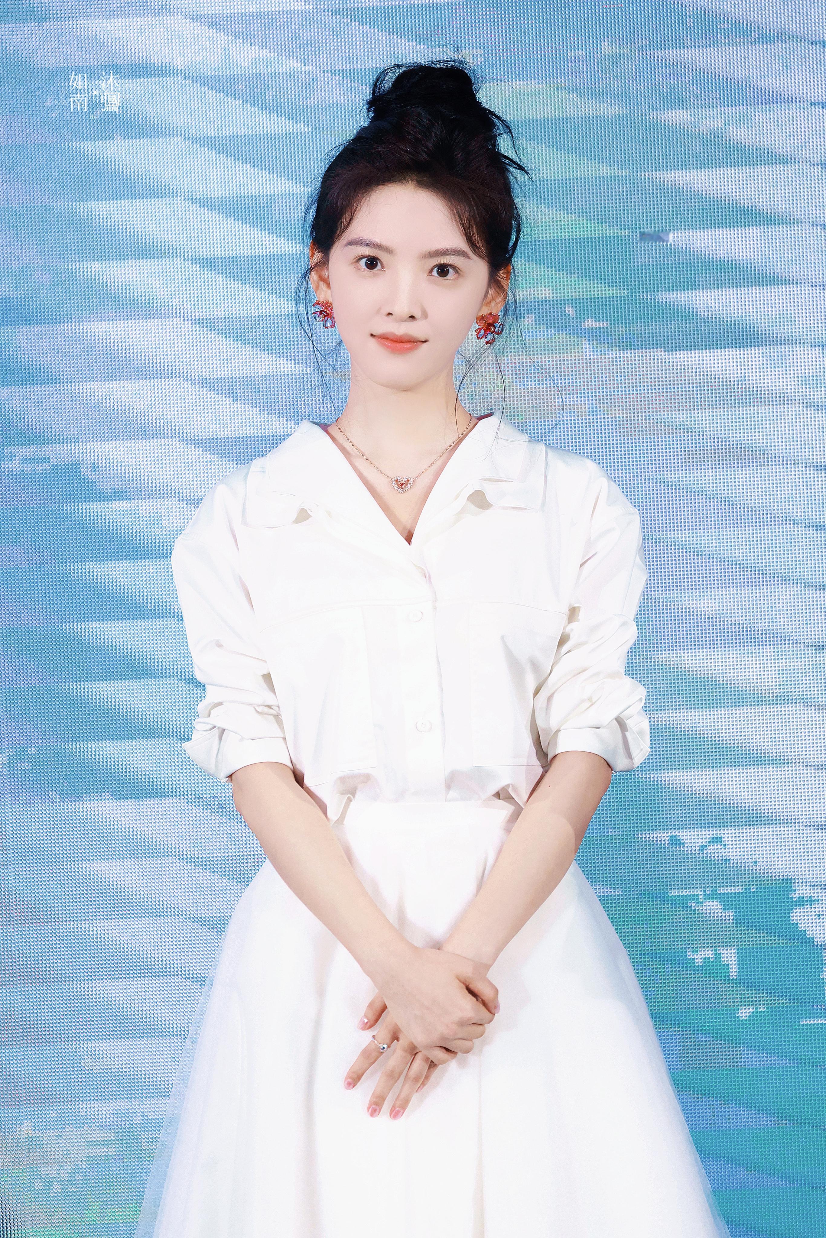 章若楠 丸子头搭配简约又不失精致的白裙造型,优雅又灵动[求关注][拜托][点赞]