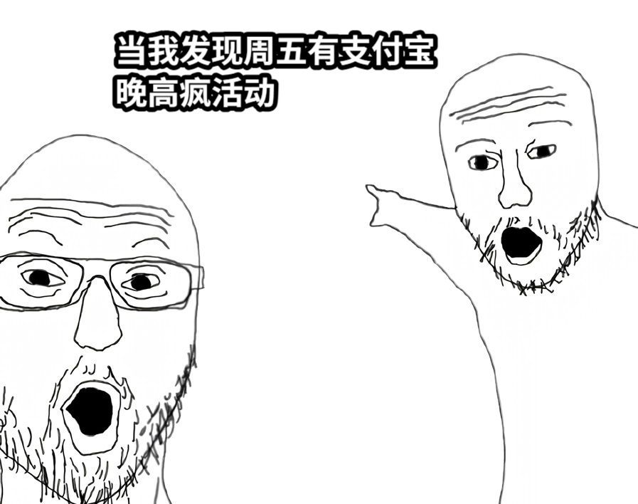 周五周五,脱胎换骨,这一周的打工状态全靠周五放假强撑。还没下班就刷到支付宝晚高疯活动,周五的快乐又加一条!周五基础支付宝晚高疯就不基础,之前周五下班到家累得不想动,这次支付宝活动直接把疲惫全扫光了!这福利不领白不领啊,10.31到11.2线下用 “碰一下” 支付有机会立减2块,周五18到20点去霸王茶姬还能冲买一送一、第二杯半价的福利,还有各种线下门店活动,不参加简直对不起自己的钱包!已经跟同事约好下班直奔奶茶店,毕竟谁能拒绝买一送一的福利诱惑啊,这波必须冲!