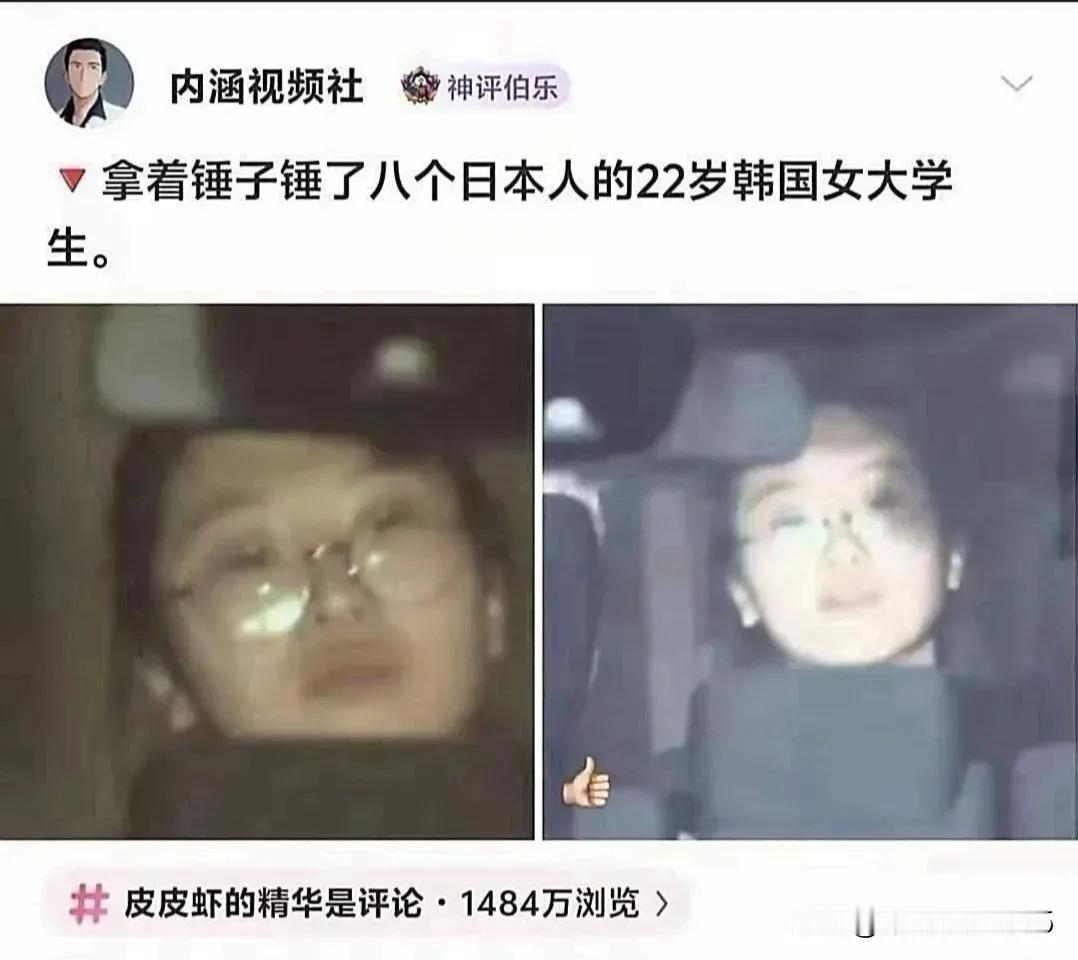 看起来斯斯文文的小姑娘,其实是个“狠人儿”‼️ 再一次验证了那句话:人不可貌相,海水不可斗量! 有网友评论说: 1,好在韩国人不全是精日分子,这么年轻的女孩就扛起了抗日大旗 2,现实版的钟无艳啊!王者荣耀的钟无艳我也爱玩!轮锤界的扛把子啊! 3,为民族谋利益,是民族英雄, 为人类谋利益,才是人类的精英! 晒图笔记大赛