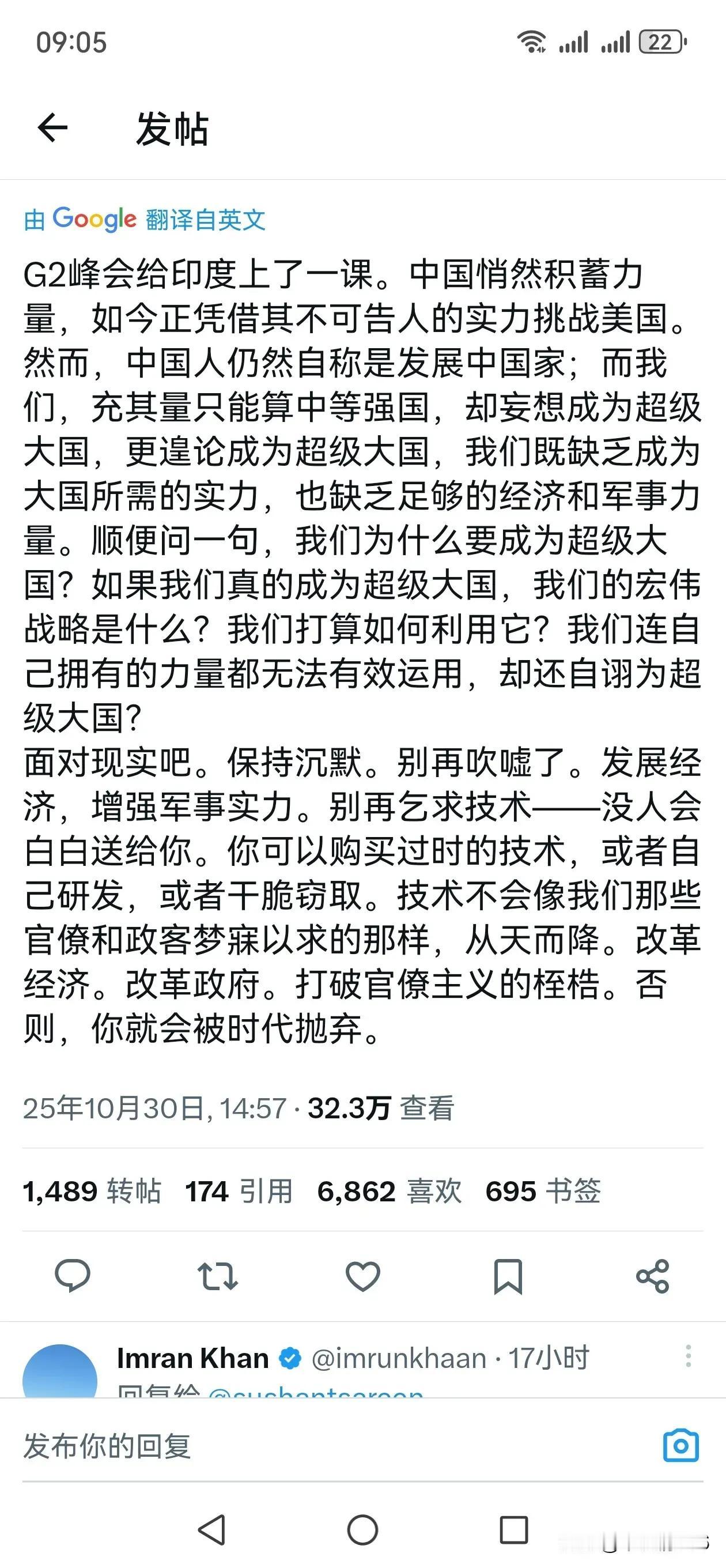 印度的公知们开始酸了,开始反思了   有网友评论说: 1,每个国家都有有识之士,从苗头开始直到成长为参天大树,都需要漫长的时间。  2,不喜欢这样理性的三哥,喜欢宇宙第一的三哥  3,不知道全世界是不是只有我们中国,国家发展的目的是实现人民对美好生活的向往,其他国家有提这个的么?    晒图笔记大赛