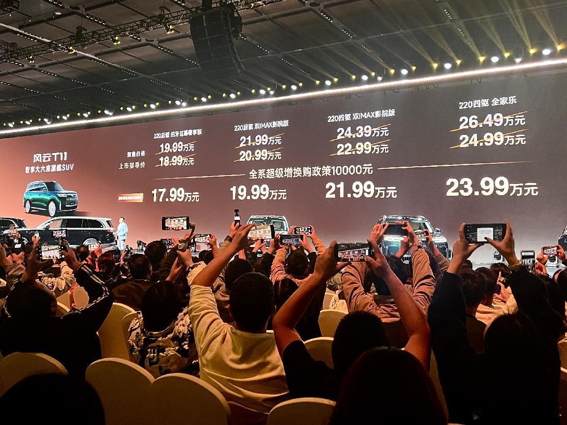 市场对此的反馈也很直接,风云T11在预售阶段曾获得首日3000台订单的成绩。官方数据显示,该车24小时内大定锁单17566台,48小时达到22678台。这些数据表明市场对“平价高端”产品确实存在旺盛的需求。新车定价18.99至24.99万元。同时推出的还有限时抢鲜价,只需17.99至23.99万元。