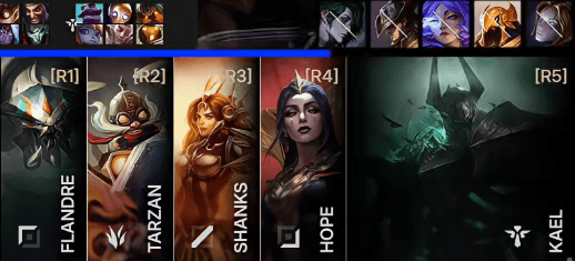 AL选用:Flandre铁男;Tarzan蝎子;Shanks乐芙兰;Hope飞机;Kael蕾欧娜