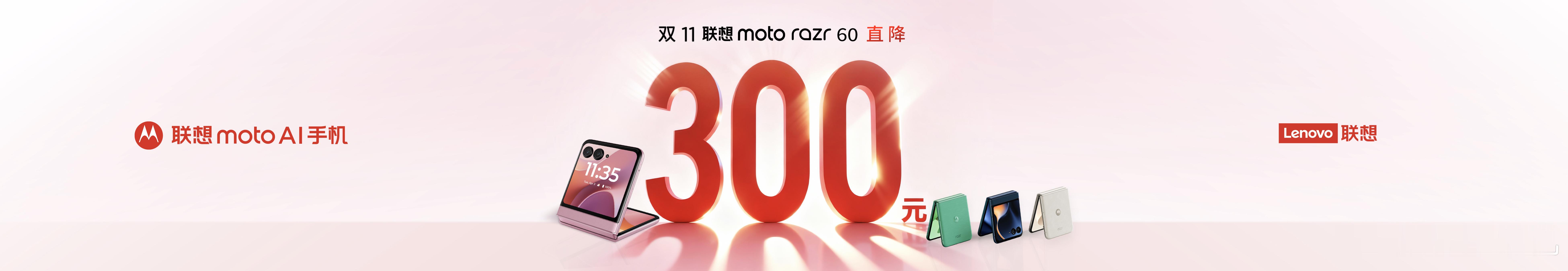 备受用户喜欢的联想moto razr 60系列斩获Q3国内小折叠线上市场销量TOP 1!恰逢双11,为回馈用户,联想moto razr 60系列直降300元,再叠加平台补贴和国补多重优惠,福利满满。