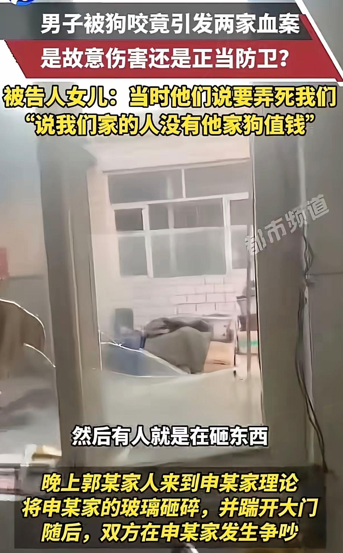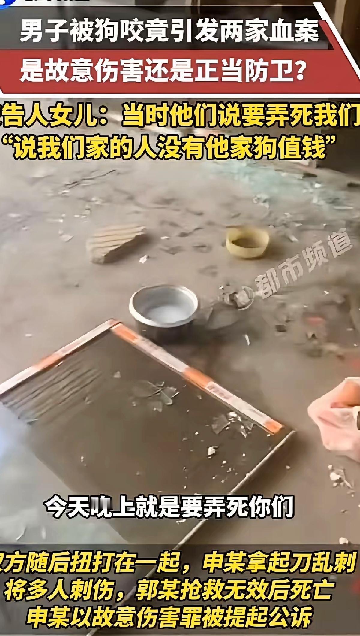 狗命比人命贵?长治这起血案,最该算的是“责任账”! 山西长治这事儿,真能把人肺气炸!孩子被狗咬,家长气不过摔死狗,结果狗主人竟带着一群人闯家门打砸,还放话“狗命比你家人命值钱”,最后被家长持刀刺死这到底是谁的错? 申某被诉故意伤害罪,他妻子喊冤说防卫过当,网友也吵翻了。在我看来,这事的根儿在狗主人郭某的蛮横和不负责任。养狗不看管咬了人,不赔医药费还上门寻衅,非法侵入民宅打砸威胁,这已经不是简单的纠纷了。 申某护妻护子的冲动能理解,法律讲规则,但也得顾情理。要是守法者被欺负到家门口还不能反抗,那谁还敢守规矩?这起血案该敲醒的是那些不负责任的养狗人,更是对“正当防卫”边界的拷问。 你觉得申某这情况算正当防卫吗?来评论区说说你的看法~