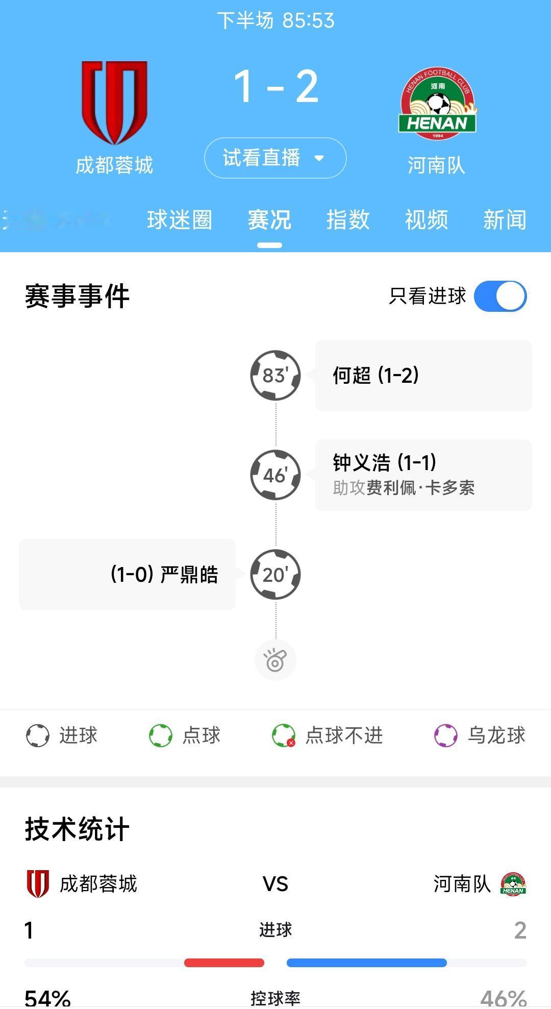 河南队落后1球的情况下连追2球领先成都蓉城。见此情景不禁感慨成都错失中超联赛冠军主要还是因为中场与后防线有些薄弱,只靠外援的个人能力略显杯水车薪。 因此下个赛季成都还是要在后防线与中场补强阵容,面对实力中下等的队伍要确保稳稳当当拿下3分,只有这样才能走得更远。