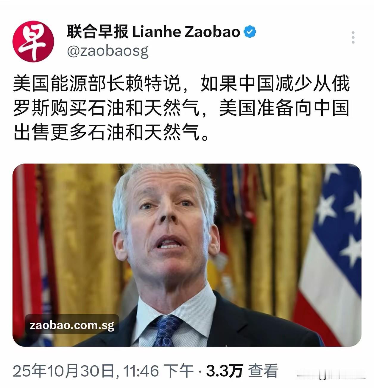 美国人想的真美,这是一箭双雕啊,既让中国买了美国的石油和天然气赚了钱,又让俄罗斯受到了制裁支持不下去,全世界都知道中国每年都购买俄罗斯大量石油和天然气,这几年美国和欧盟一直在威逼中国停止购买,都没能成功,现在美国能源部长竟然这样说,真是既幼稚又低能,这位部长还是洗洗睡吧