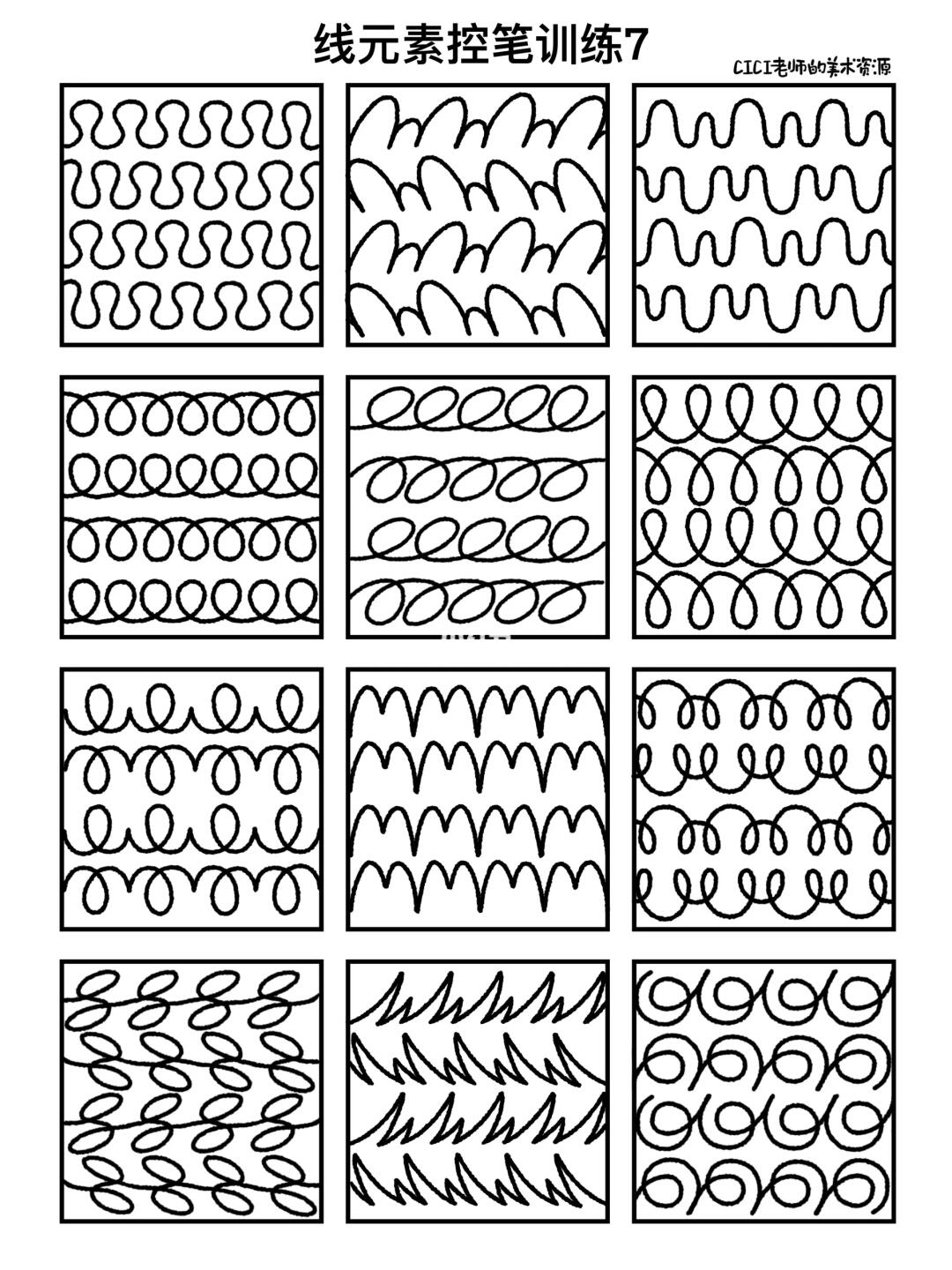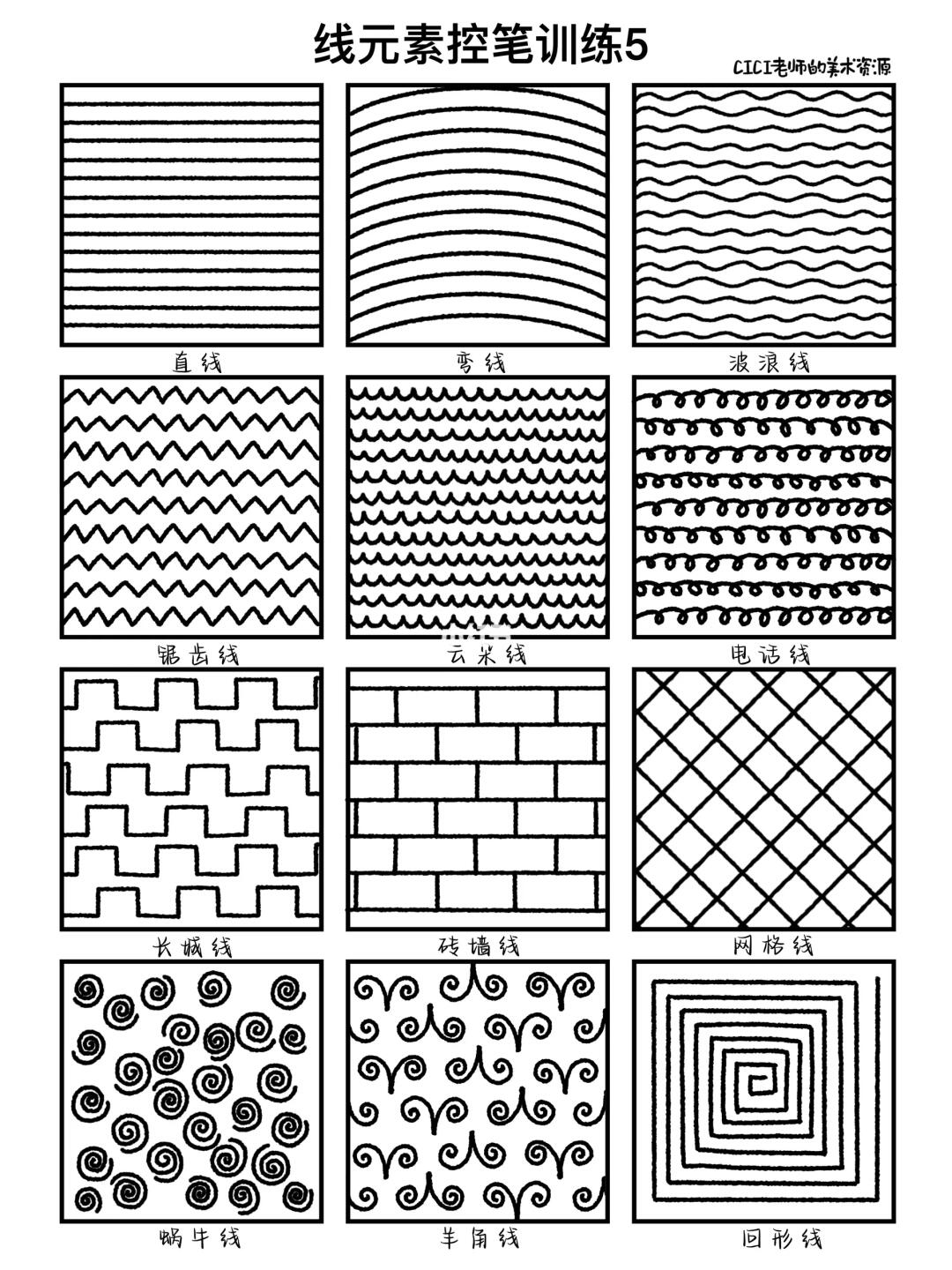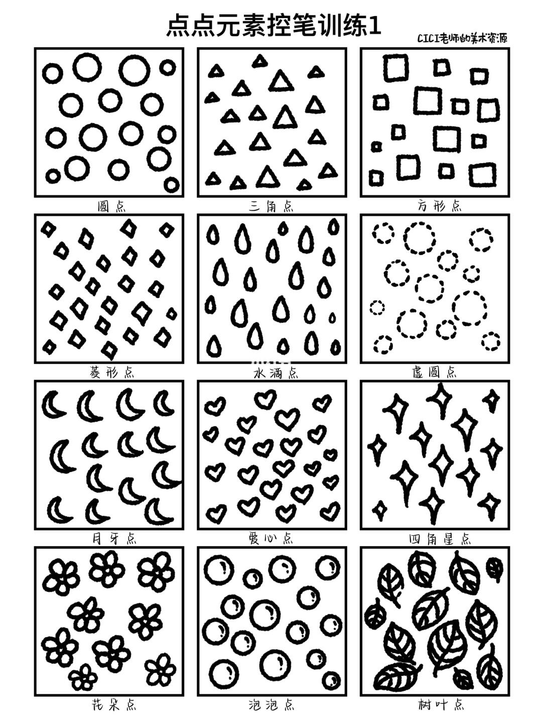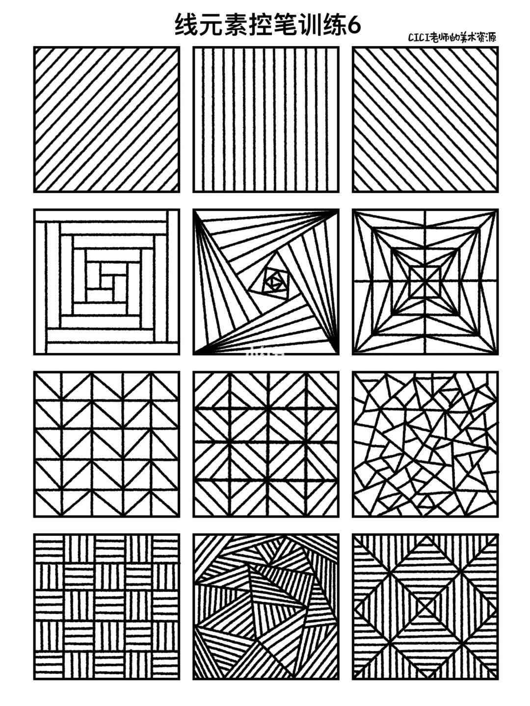 🔸从零基础开始控笔训练,一起来画画打卡吧! 黑白线描装饰画花纹,手绘练习必备临摹卡, 这个系列是点线面三元素花纹的积累。 🎨这些素材适用于,与点线面装饰画相关的美术课程: - 人教版美术一上第3课《彩线连彩点》 -人教版一下第3课《花地毯》 -人教版一下第4课《分一分 变一变》 -人教版一下第6课《摸一摸 画一画》 -人教版二上第10课《画出你的想象》 -人教版二下第3课《点、线、面》 -人教版二下第4课《漂亮的包装纸》 -人教版二下第5课《五味瓶》 -人教版二下第8课《叶子上的小血管》 -人教版三上第2课《万花筒》 -人教版三下第5课《感受音乐》 -人教版三下第11课《动物的花衣裳》 -人教版四上第4课《生活中的线条》 -人教版四上第5课《节奏的美感》 -人教版四下第2课《点的魅力》 -人教版五下第1课《形的魅力》 -人教版六上第4课《线与造型》 -人美版一下第4课《我们身边的线条》 -人美版二上第1课《会变的线条》 -人美版二下第4课《绘画游戏》 -浙美版一上《美术万花筒》 -浙美版一上第17课《动物身上的斑点》 -浙美版四下第14课《线条的魅力》 👩‍🎨备注:不是原创,大部分临摹教材、网图和的大佬们,小部分有改动。 📔篇幅太多,这里就不一一圈了,大部分找不到作者是谁,💃找得到的前面的笔记文案有圈原作者哦。 🈲️商用勿转载,仅供学习参考,🎨临摹请注明出处并