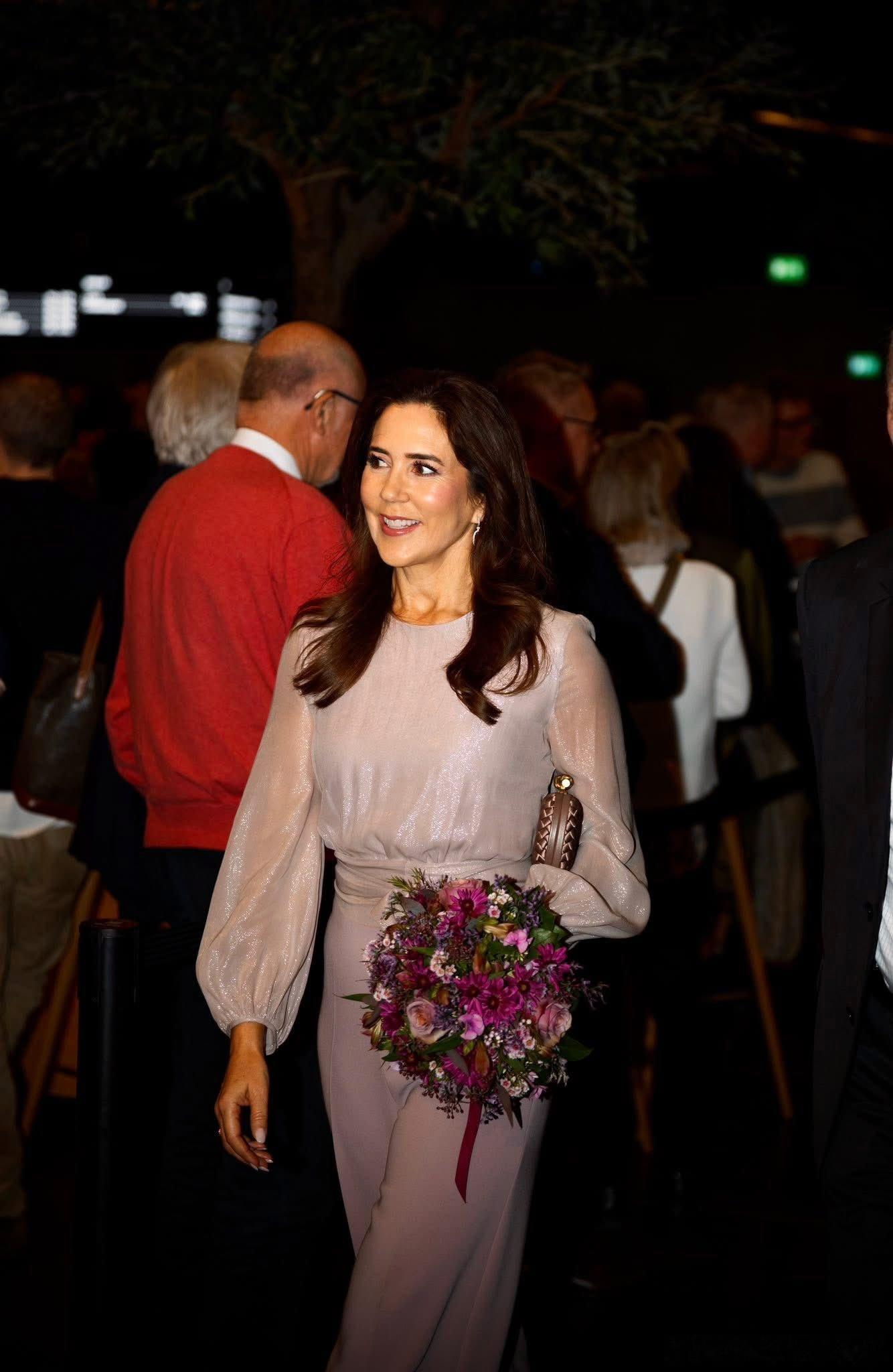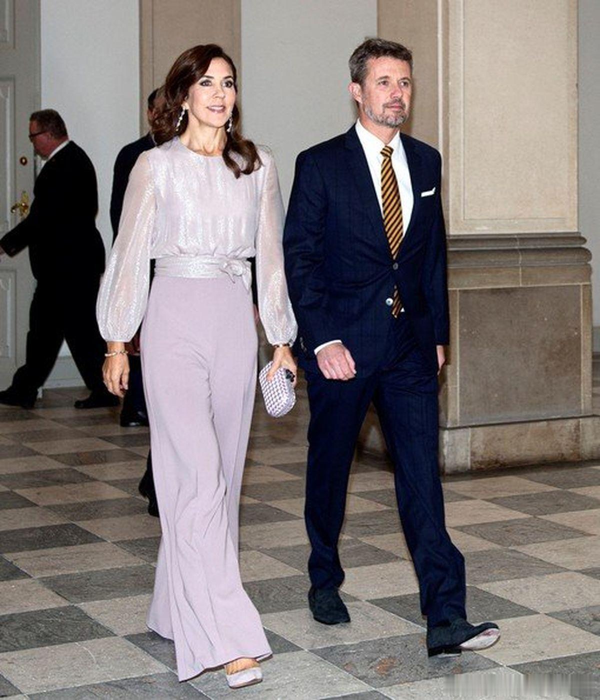 你究竟有多爱这件衣服 丹麦王后玛丽的粉色Max Mara乔其纱连体裤,上半身采用带亮面闪片浅粉色乔其纱,下半身是藕粉色高腰阔腿裤,腰部饰有蝴蝶结系带和腰带两种设计,大玛丽从2019年入手开始穿,当时售价是468英镑,之后陆陆续续穿了四次,穿着效果很好。