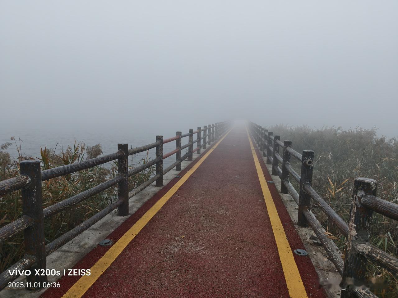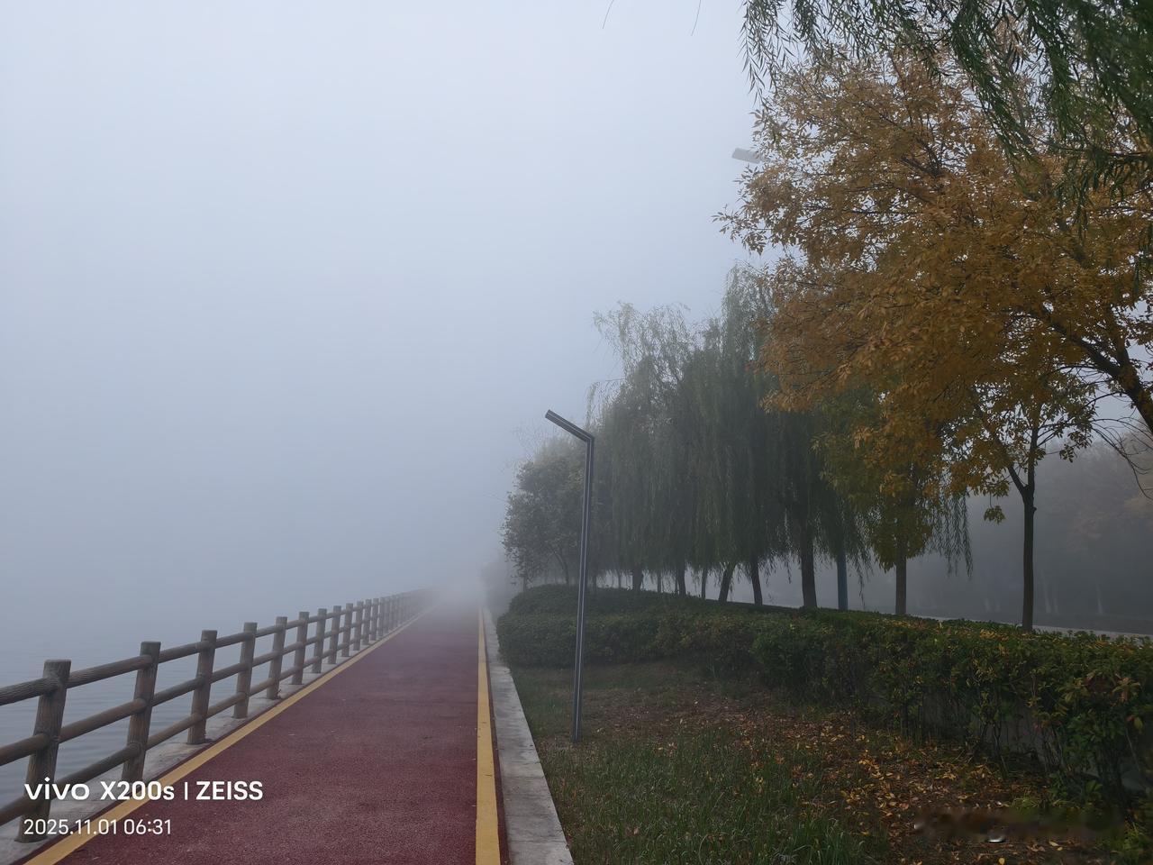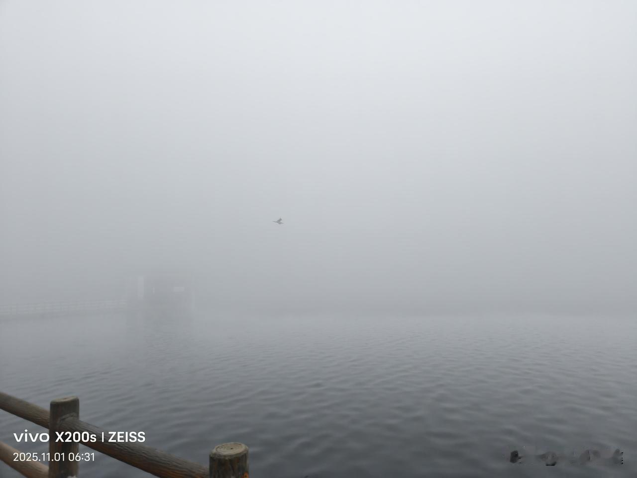 十一月第一天,东营大雾,东城明月湖能见度不是百米。