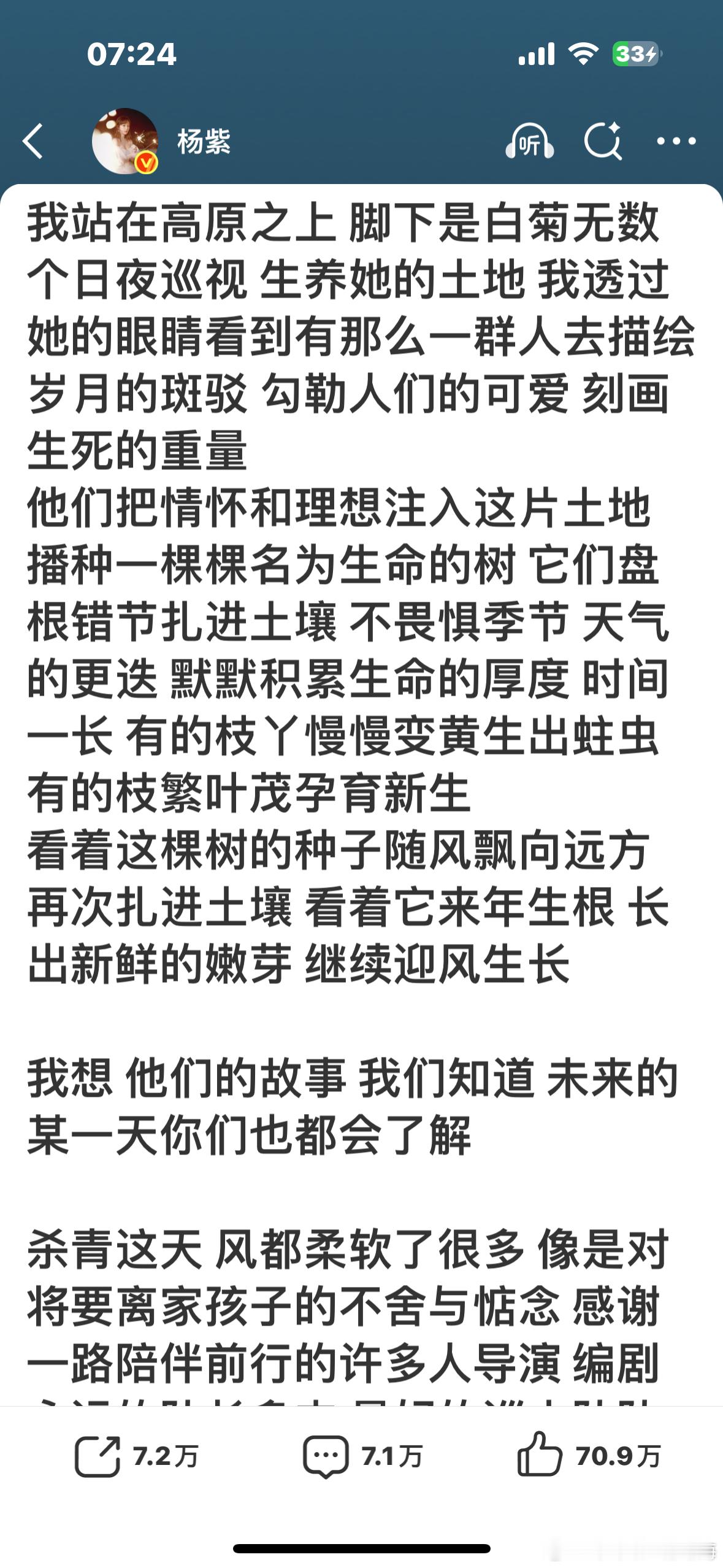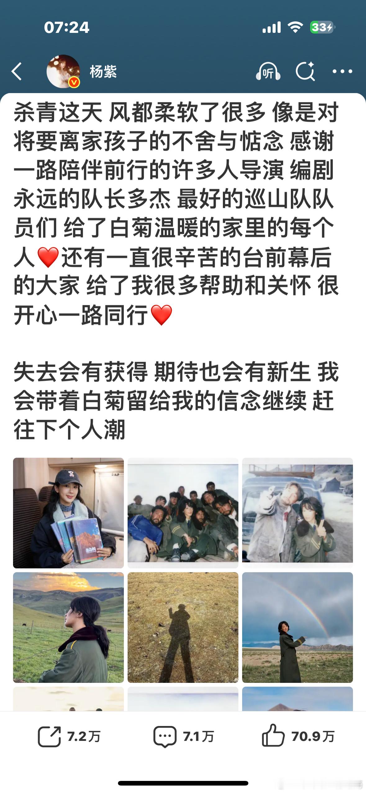 10月31日,杨紫在社交平台发文,谈及拍戏时的感受,坦言要怎样形容这段日子……