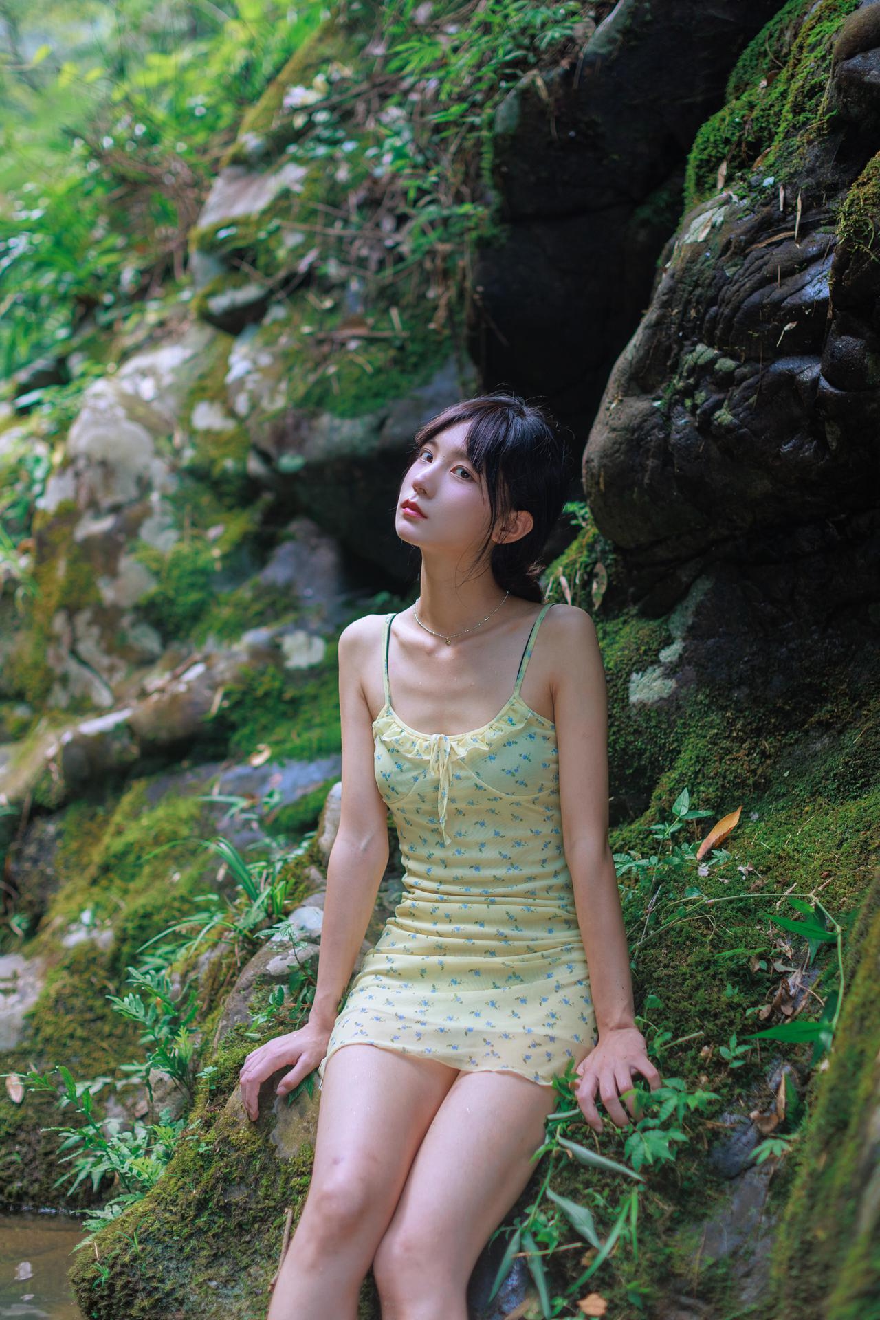 贴近自然, 来一场与心灵的温柔邂逅。 当肌肤触碰苔藓的湿润, 当鼻尖萦绕草木的芬芳, 她如同林间精灵, 在溪石与绿意间舒展。 淡黄色碎花裙摇曳,是自然晕染的温柔笔触; barefoot 轻触溪水,是与大地最亲昵的对话。 在这里, 时间慢成苔藓的生长, 心绪静如深涧的流水, 每一次呼吸都在与自然交换密语, 把都市的喧嚣揉碎在这一方绿意里, 只余纯粹的心动,在自然的怀抱中悄然绽放。 拍摄心得分享: ①拍摄这类自然人像,要善于捕捉环境与人物的共鸣。 ②选景时可着重选择苔藓石、溪流这类充满生机的角落,让自然成为天然布景。 ③引导模特时,鼓励她与草木、岩石互动,抓拍那些松弛又有情绪的瞬间。 ④光线要柔和,利用林间的漫射光凸显质感,色彩上保留自然的绿意与服饰的清新,让画面既有自然的野趣,又有人像的灵动,每一张都是自然与人文的温柔交融。