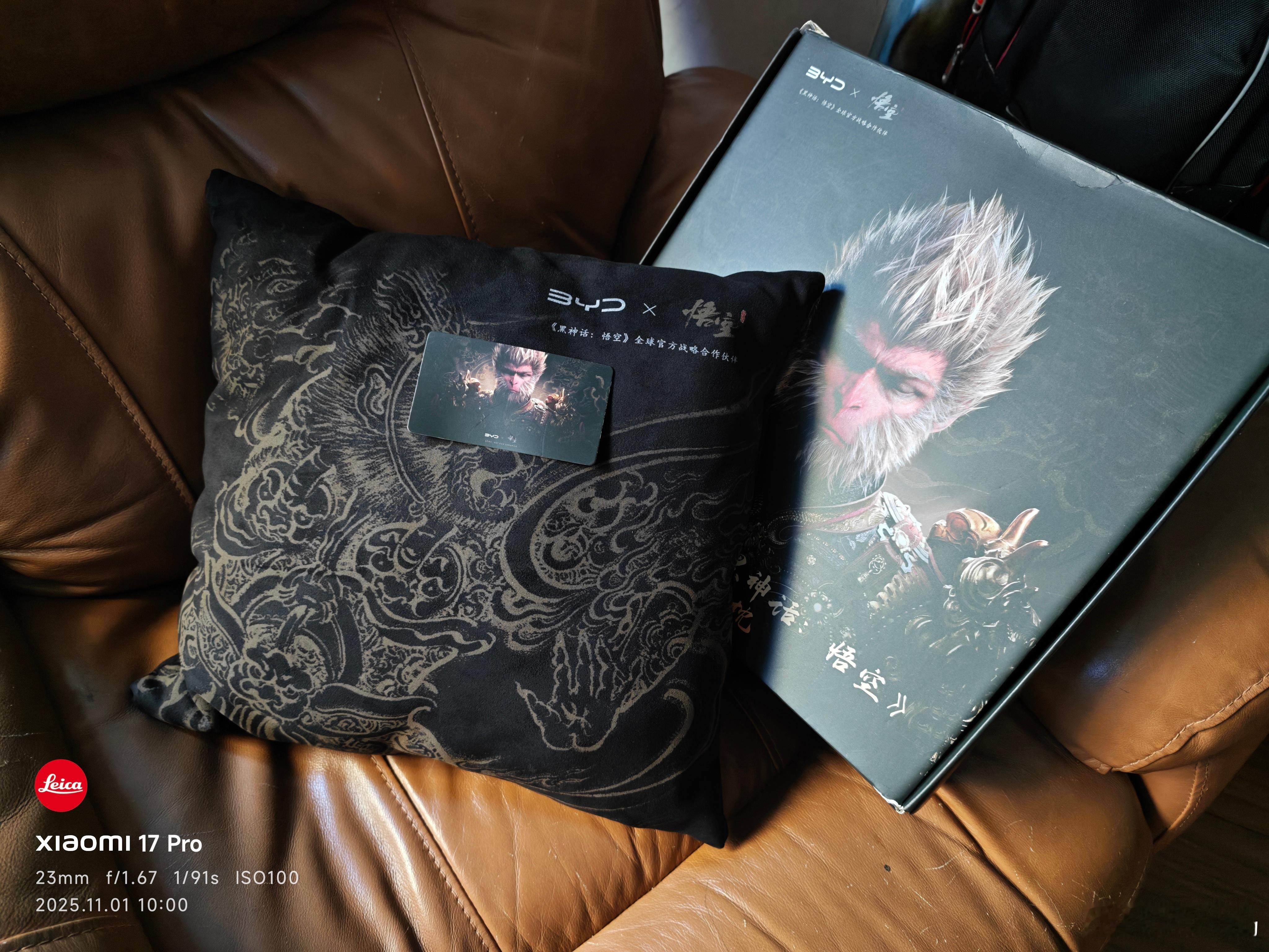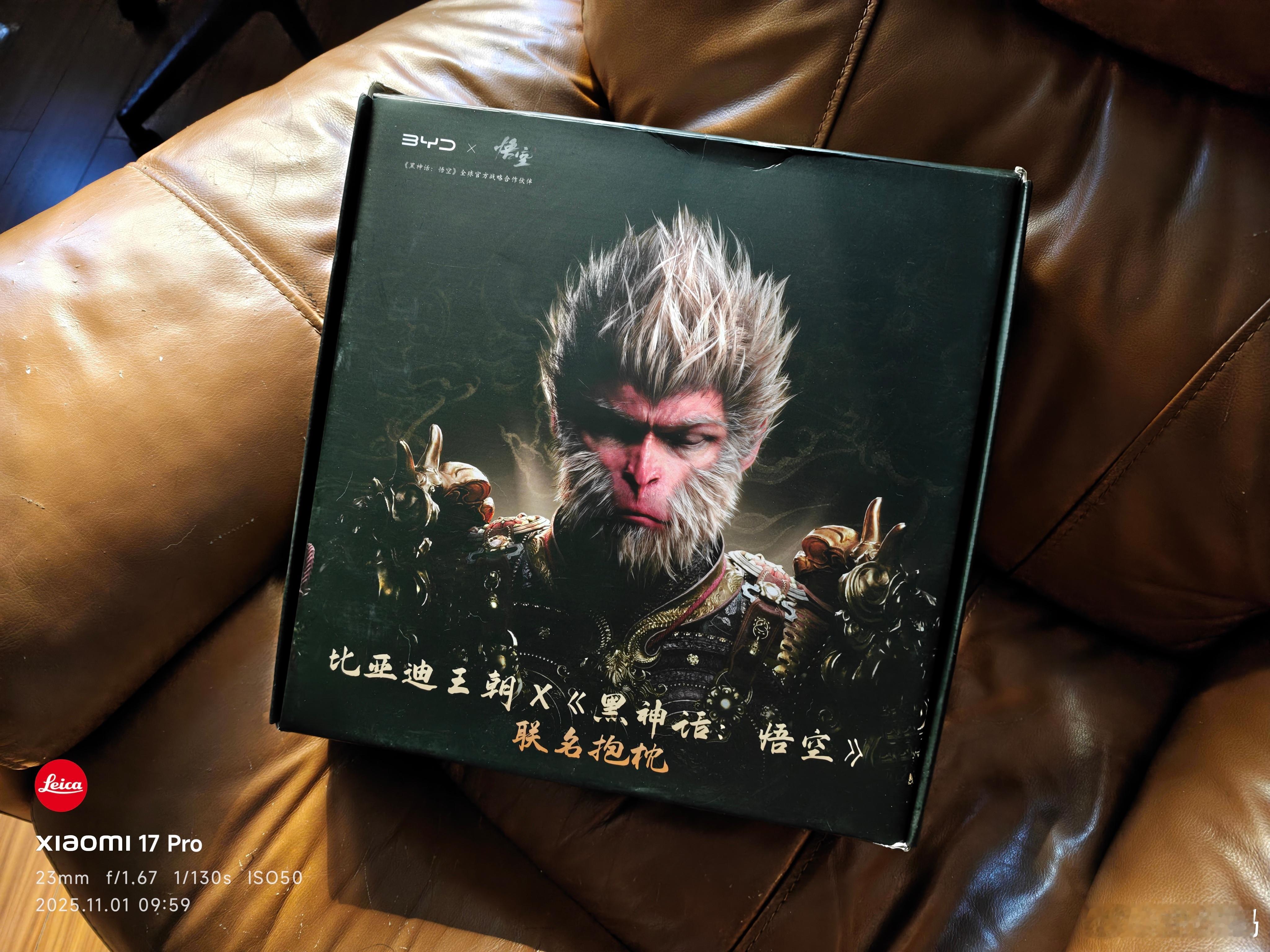 比亚迪和黑神话悟空联名的抱枕收到了,看到这外包装盒子就让人看得有点心潮澎湃。