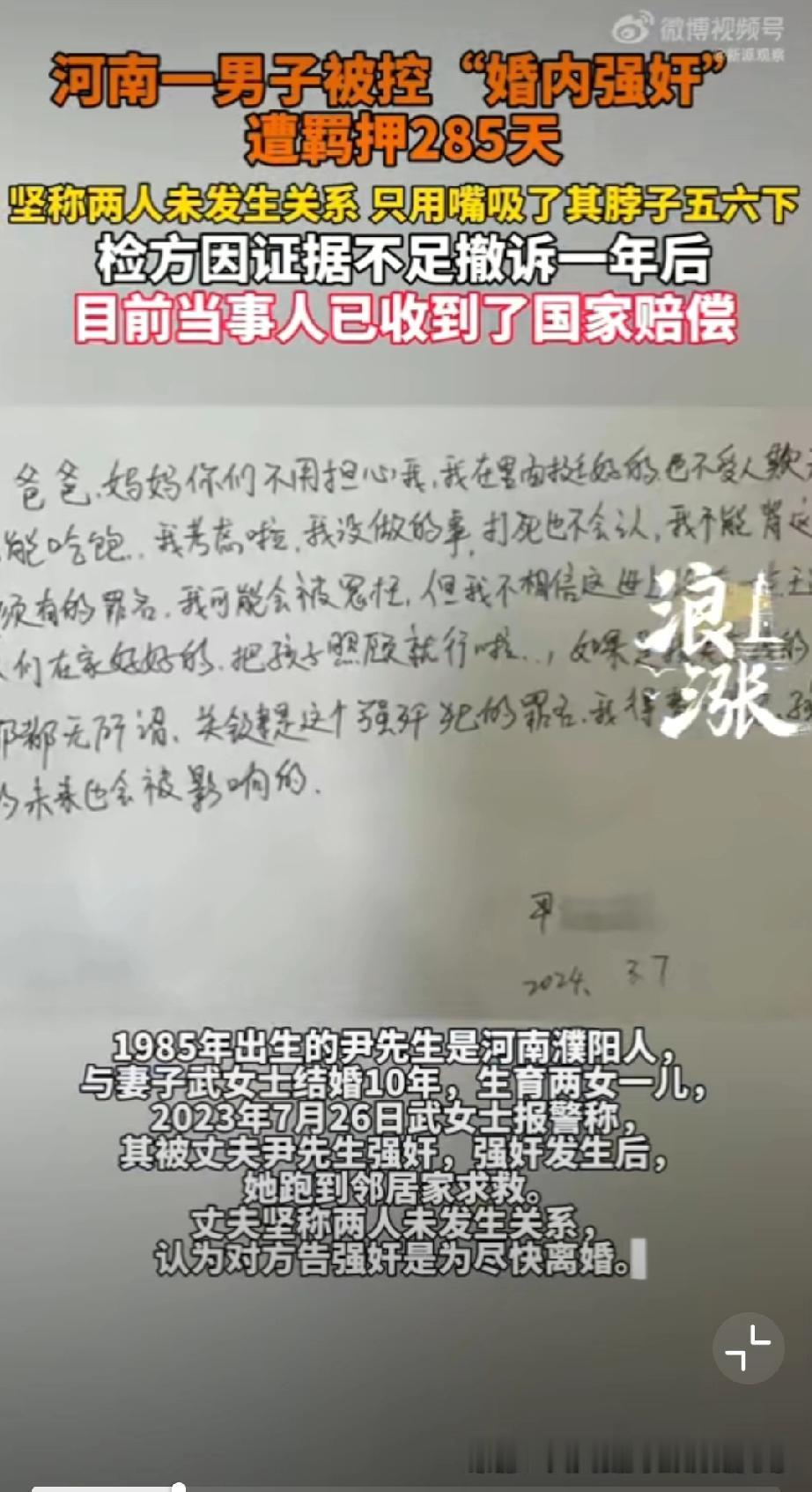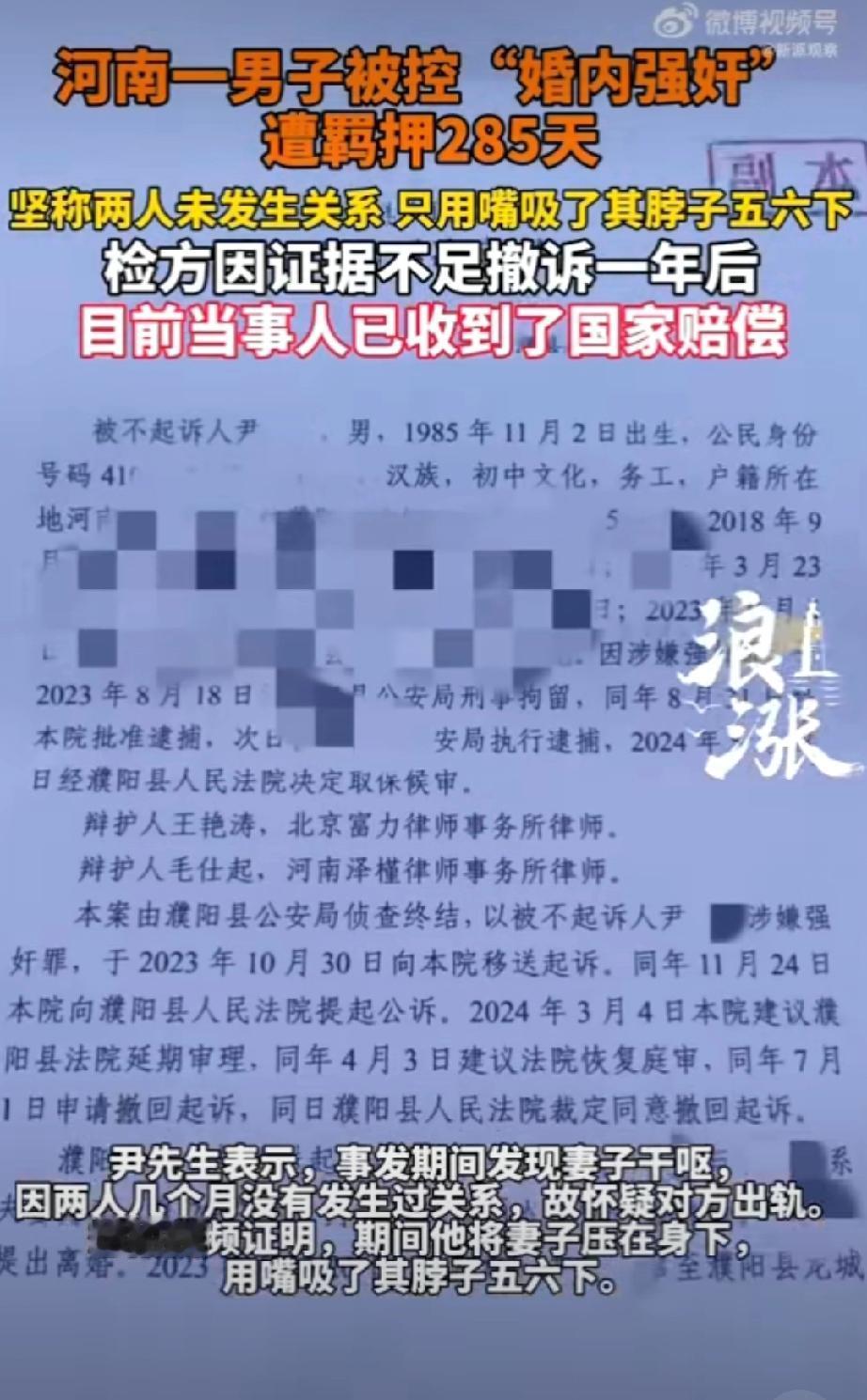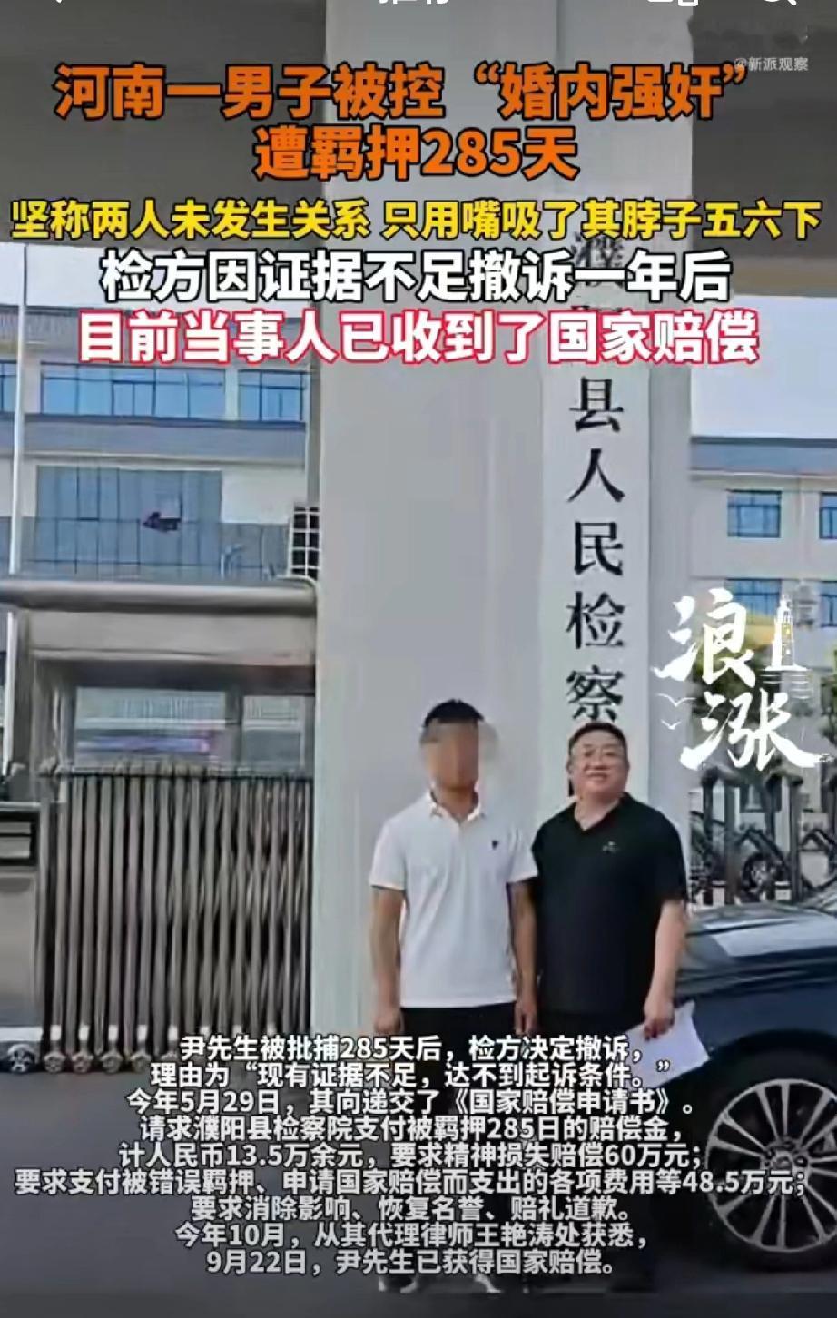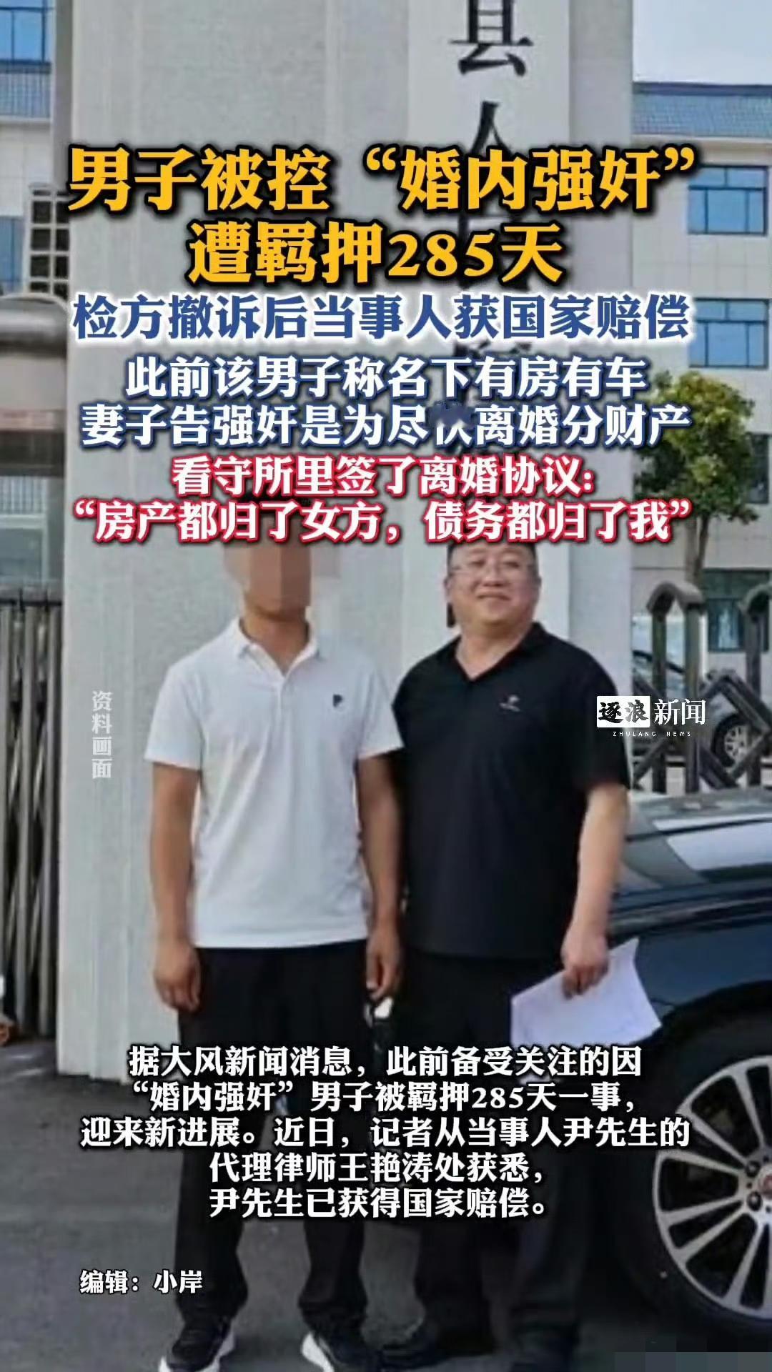 婚内强奸遭羁押285天男子获国赔。 这个案子我不觉得国家赔付是什么光荣的事情,案子的线索非常清晰。 男方付出了自己父母提供的房子,背负了所有债务,因为男方“阳痿”所以强奸婚内强奸事实完全不属实,结果这件事情的结尾是男子被羁押了285天获得了国家赔付? 咱们朴素的价值观是不是应该“惩罚坏人”? 这个案子里男方被诬告、羁押、财产损失,已经被罚得够够的了,但是事实证明他是清白的,国家赔偿本质上是大众承担,大众在这个案子里也没有任何错,为什么要承担这个赔付?性侵认定 婚内强奸 男性强奸案