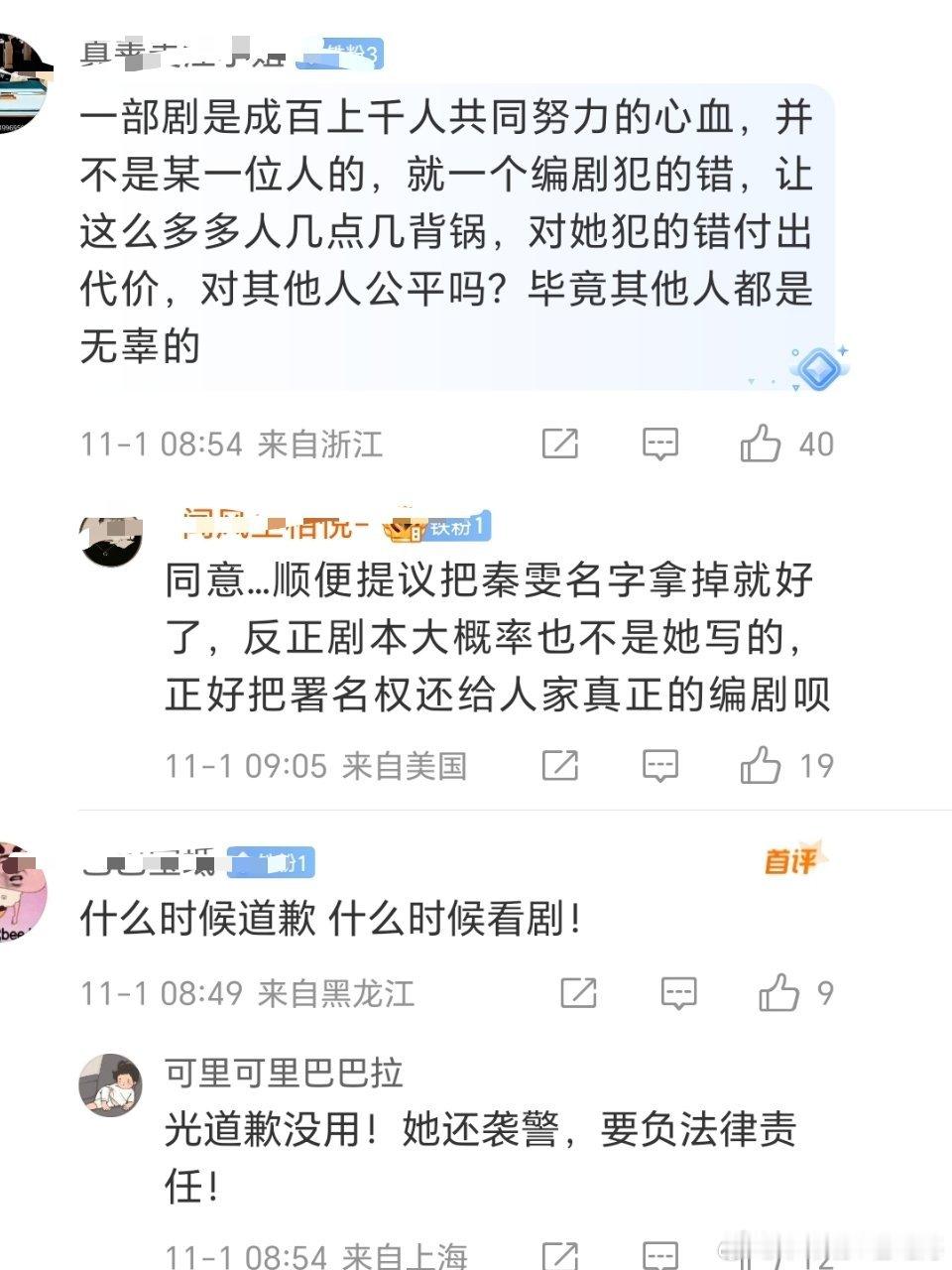 网友:一部剧是成百上千人的共同努力的心血,编剧犯错让所有的成员背锅,让人意难平啊!