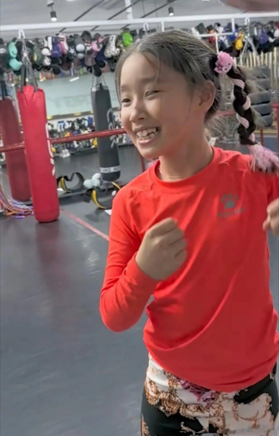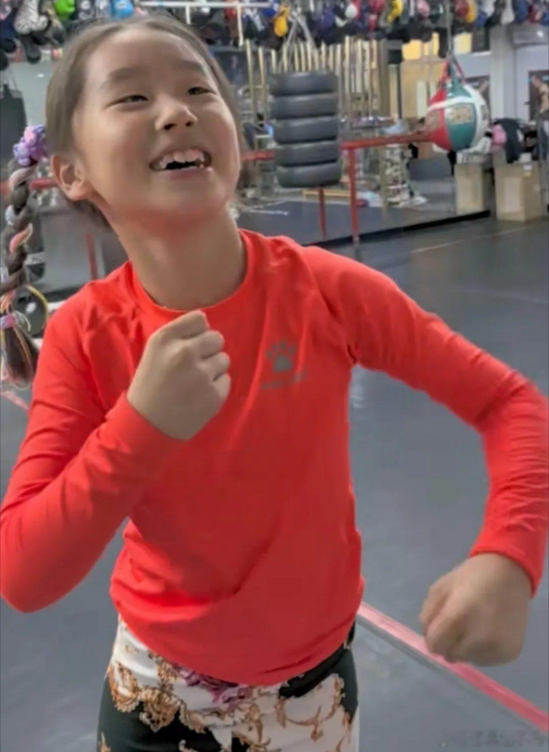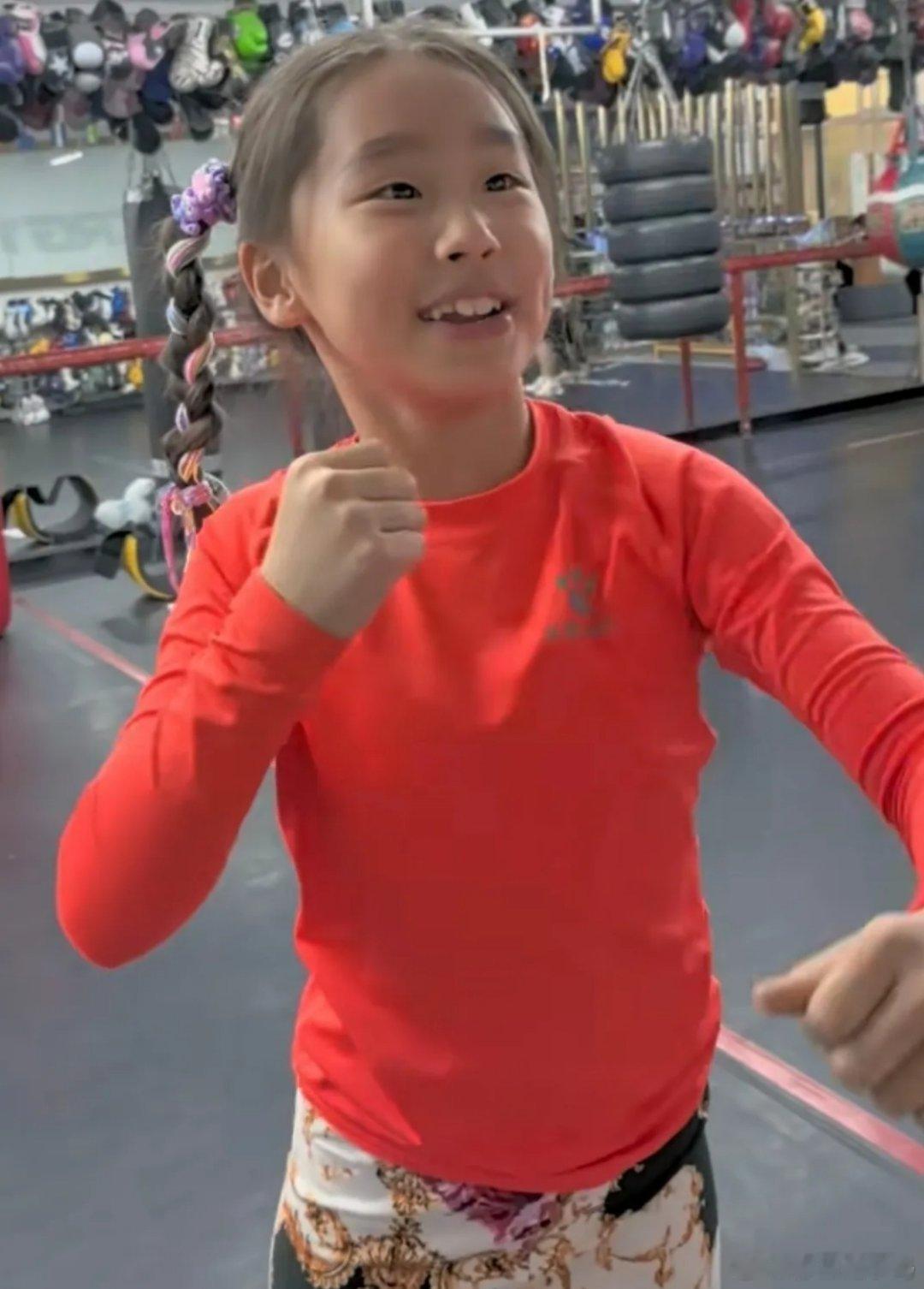 赵文卓晒小女儿练自由搏击,9岁赵子月皮肤有点黑,活泼爱笑性格很开朗,但长得不如大姐赵子仪好看,两颗门牙长歪了自带喜感,单眼皮,脸上还有小酒窝,是个很招人喜欢的小姑娘,两个麻花辫上面还加了粉色装饰,张丹露把孩子打扮得很俏皮。
