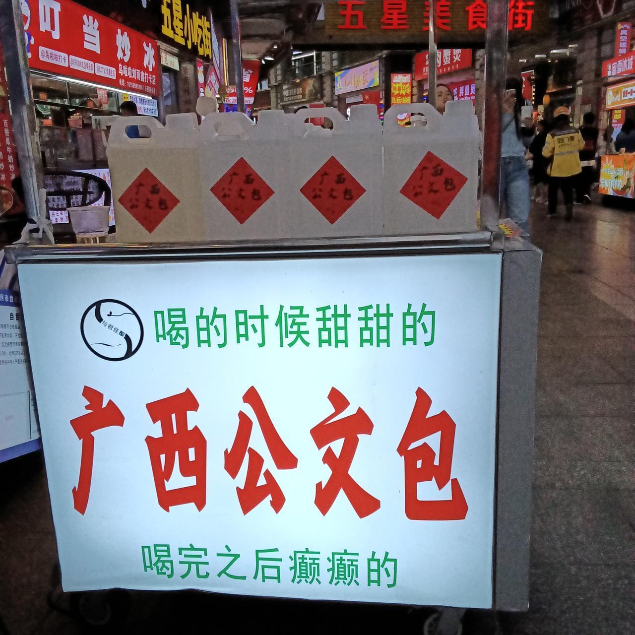 公文包在广西是什么意义呢? 这次广西避寒过冬康养之旅第1站就到了全省第二大城市柳州。 逛夜市的时候看到广西公文包几个字不免有些好奇。再细细了解摊位上摆的都是一瓶瓶一坛坛的白酒。 此时顿悟原来广西公文包是酒的代名词。 这个名字源于其独特的盛酒容器——白色方形塑料桶的造型与公文包相似,因此得名。 一些文章或视频中可能会讲到“喝公文包”,您就明白是什么意思了吧。 广西公文包多指米酒,度数较低,少饮有益。