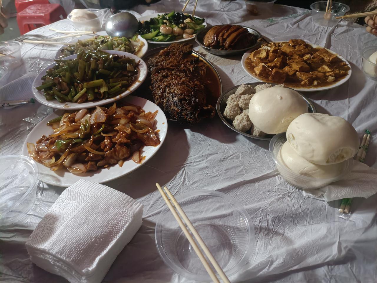 中午开席,大棚里一下子坐满了人,比早上灵棚前热闹多了。 菜是真好吃,镇上大厨