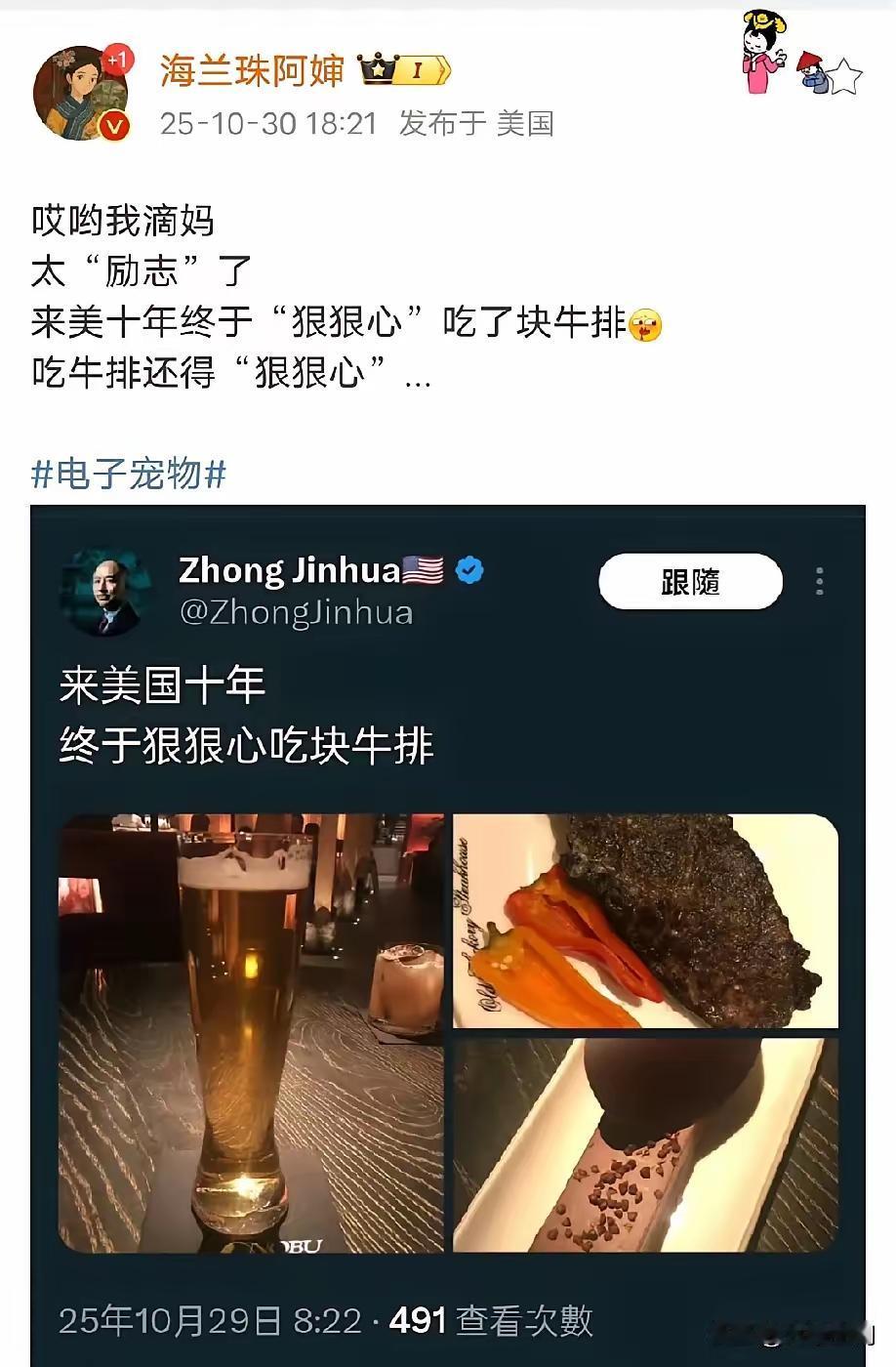 润到美国十年,终于“狠狠心”吃上了牛排[捂脸] 润人混到你这个地步,也算是没谁
